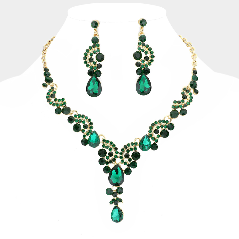 Teardrop Pendant Accent Rhinestone Paved Jewelry Set