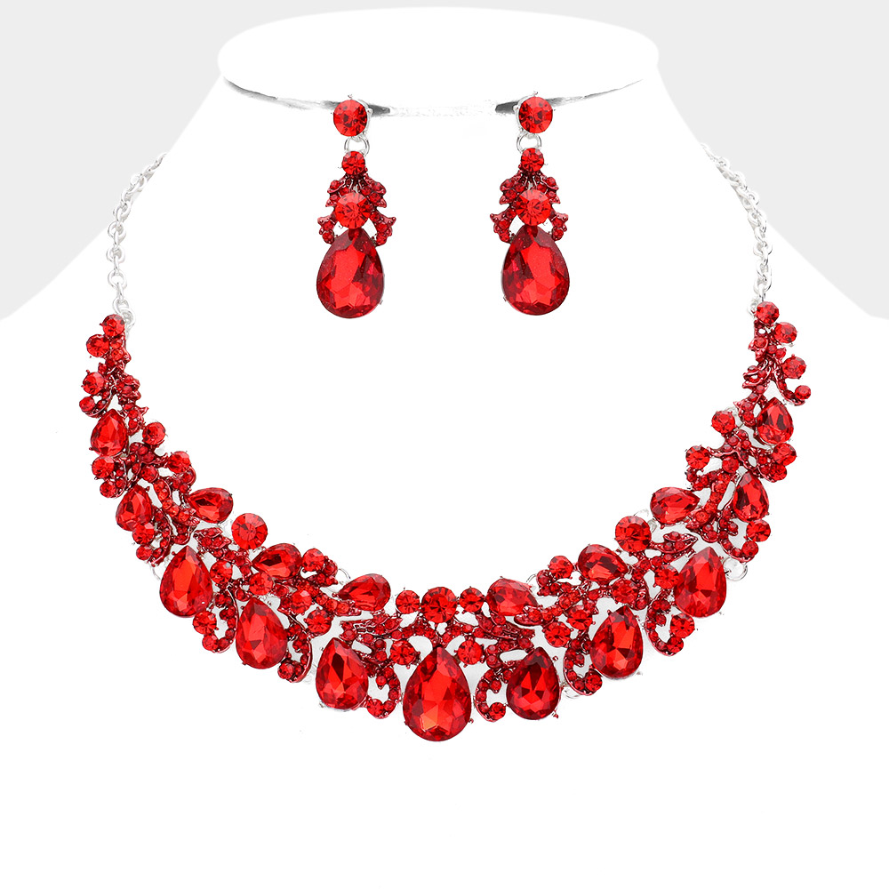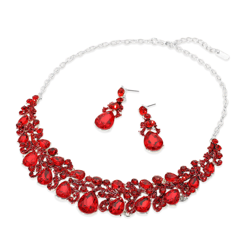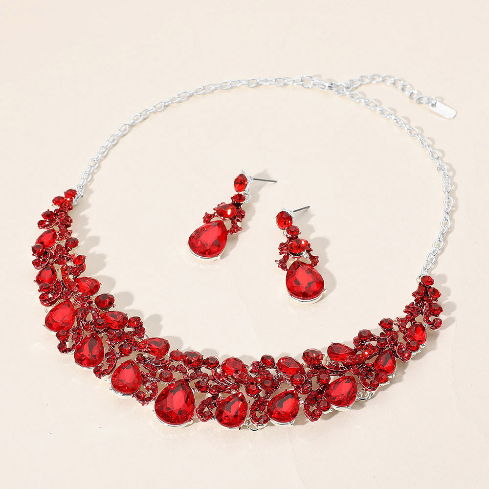 Colored Rose Flower Marquise Stone Cluster Link Rhinestone Paved Necklace