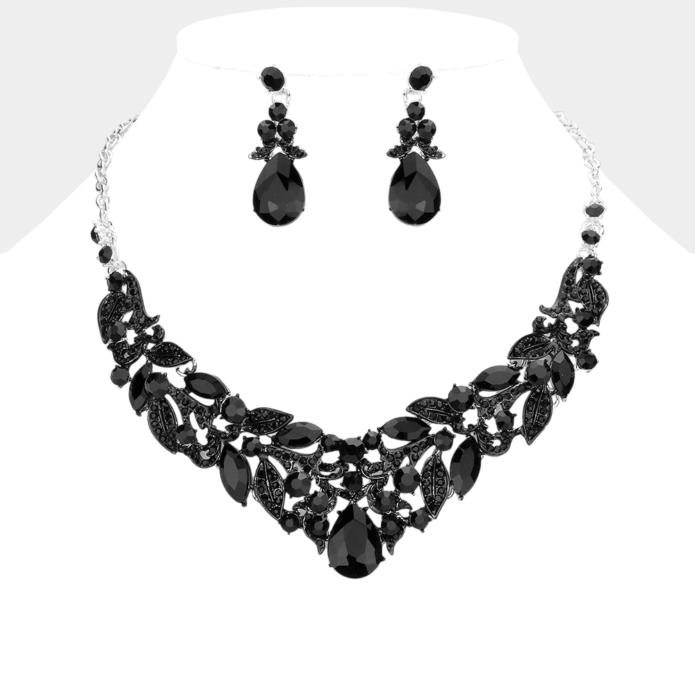 Teardrop Stone Accented Leaf Cluster Evening Necklace