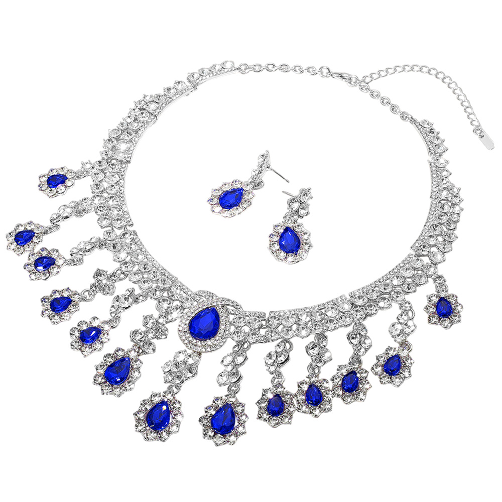 Oval Stone Accented V Shaped Rhinestone Necklace Clip on Earring Set