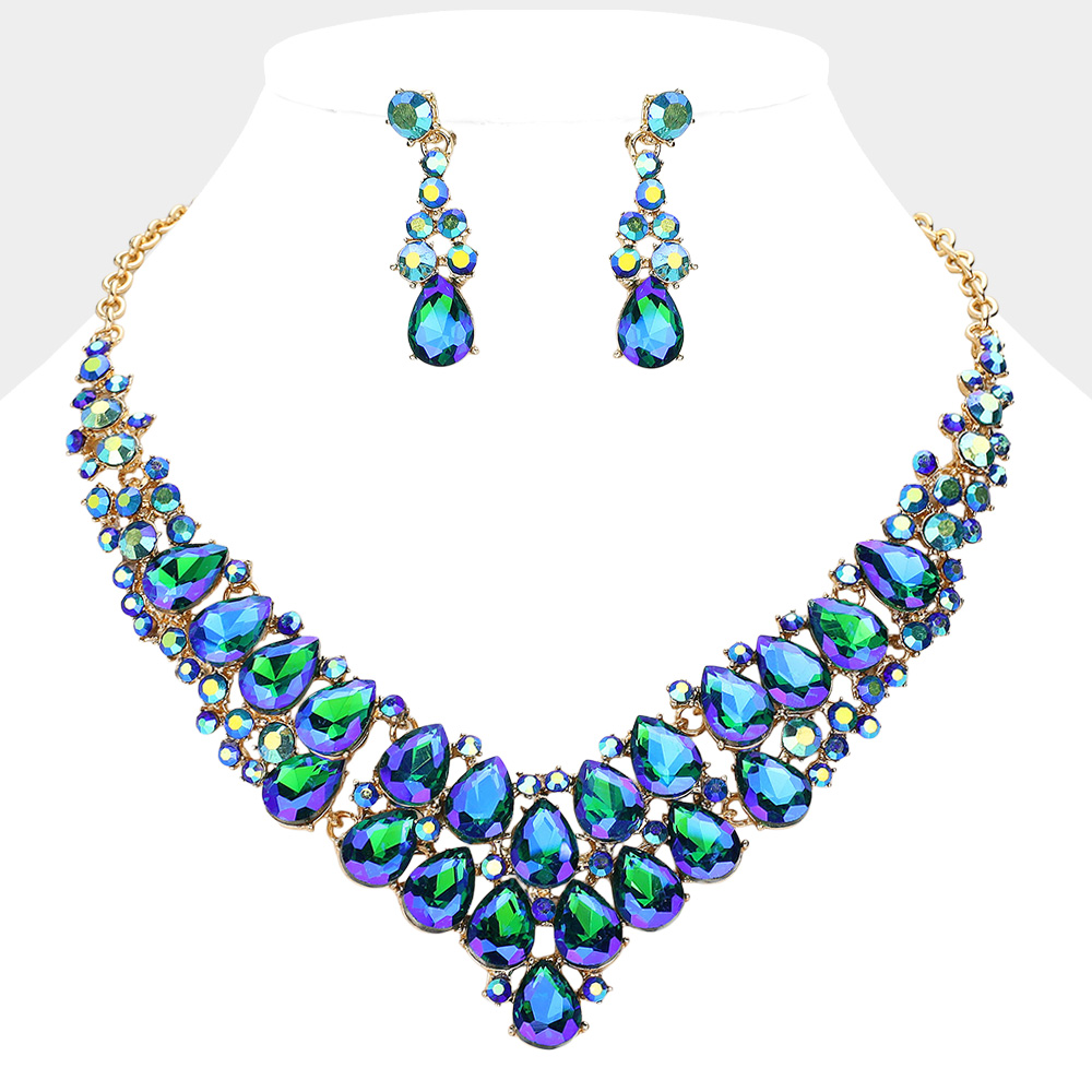 Teardrop Stone Cluster Collar Evening Necklace