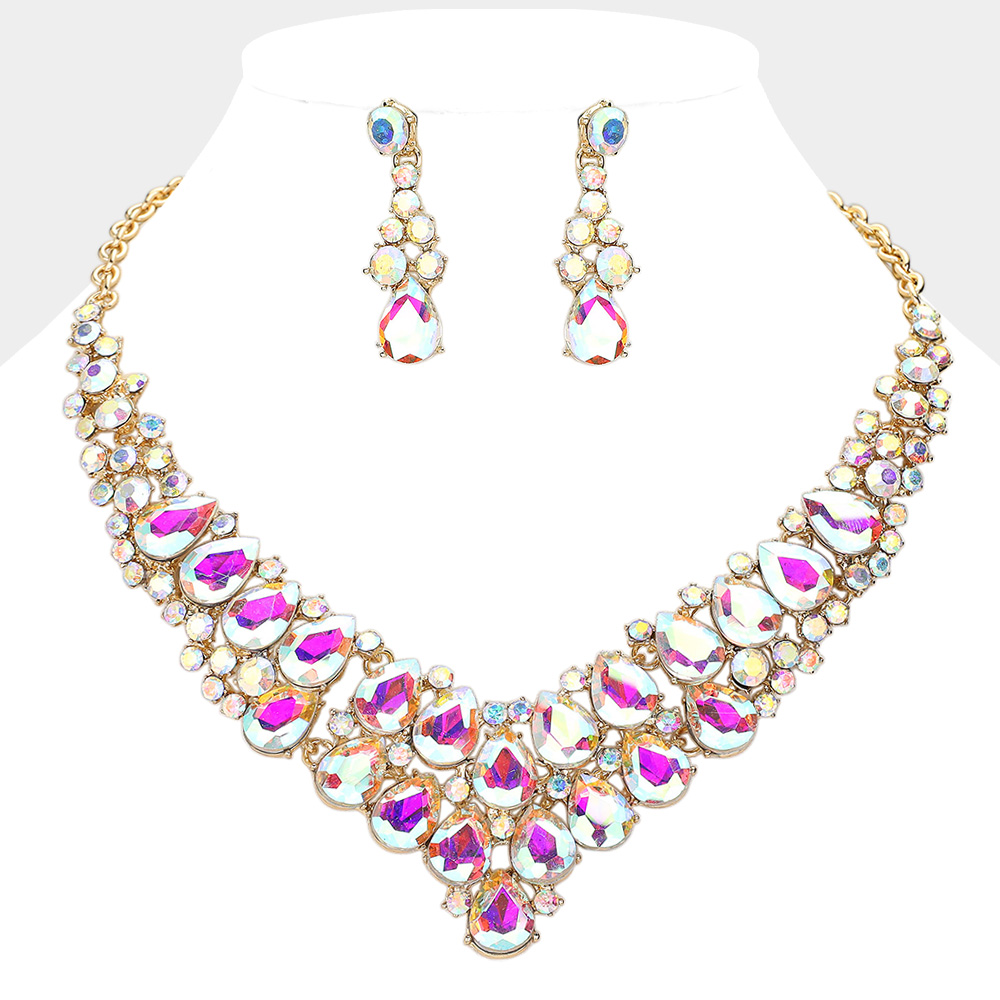 Teardrop Cluster Rhinestone Paved Leaf Necklace