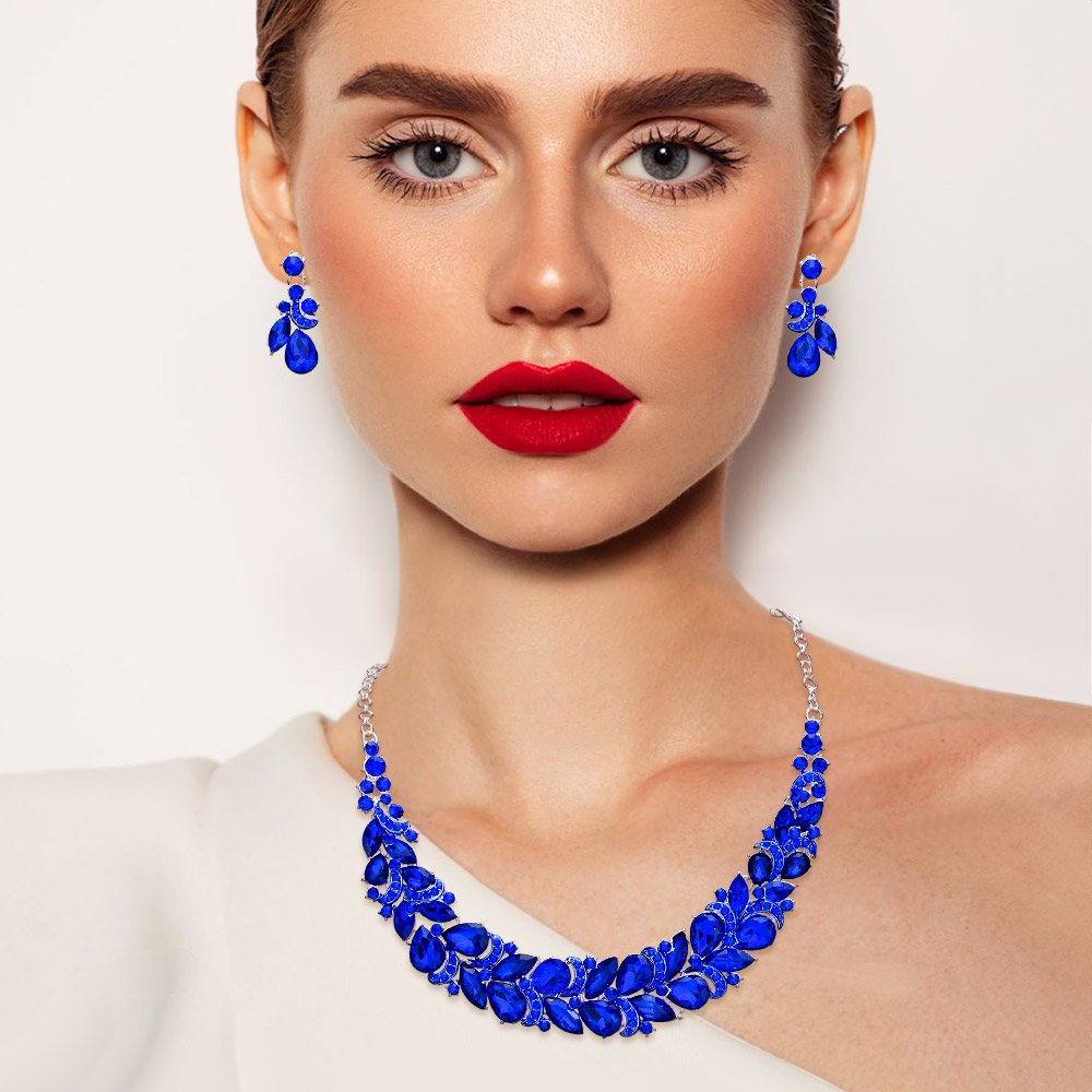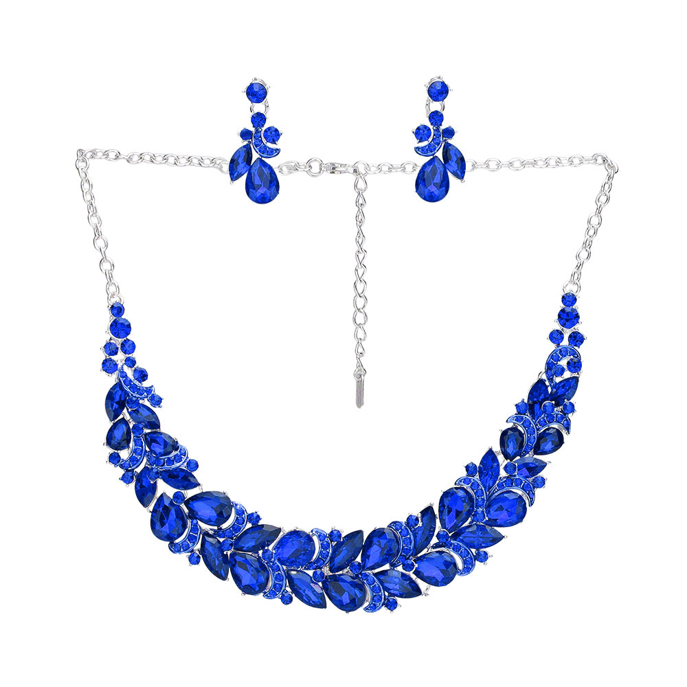 Teardrop Stone Cluster Embellished Evening Necklace
