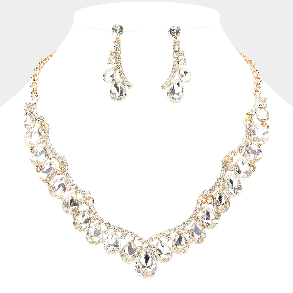 Triple Flower Stone Cluster Link Teardrop Pointed Evening Earrings