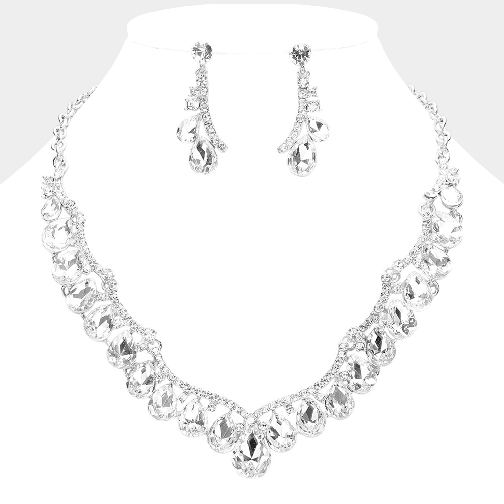 Teardrop Stone Cluster Embellished Evening Necklace