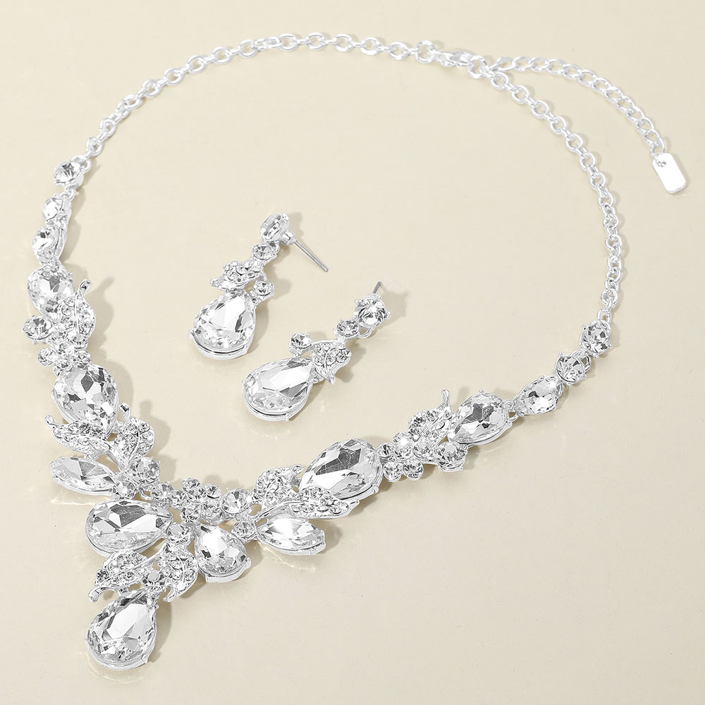 Teardrop Pendant Accent Rhinestone Paved Jewelry Set