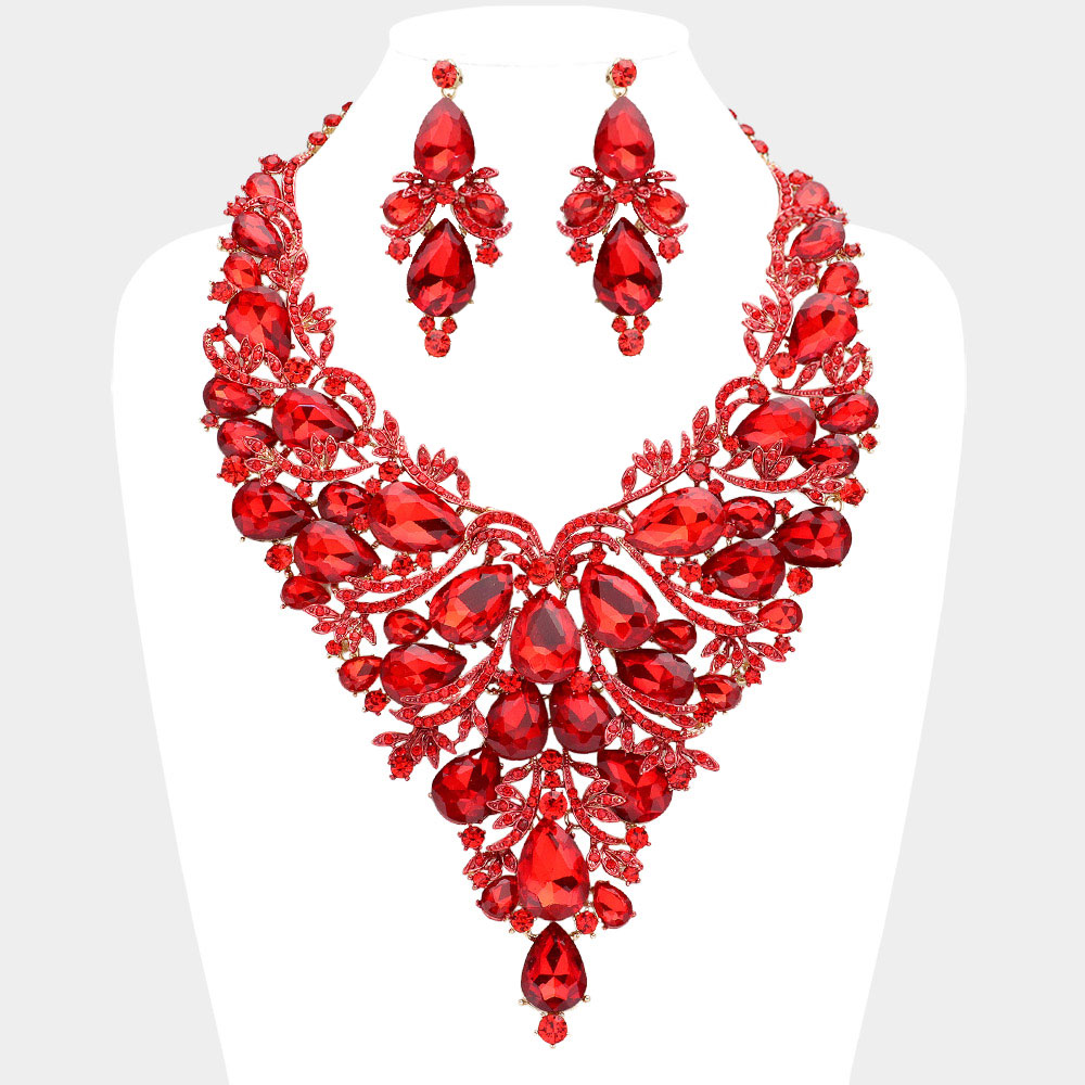 Teardrop Stone Cluster Embellished Evening Statement Necklace