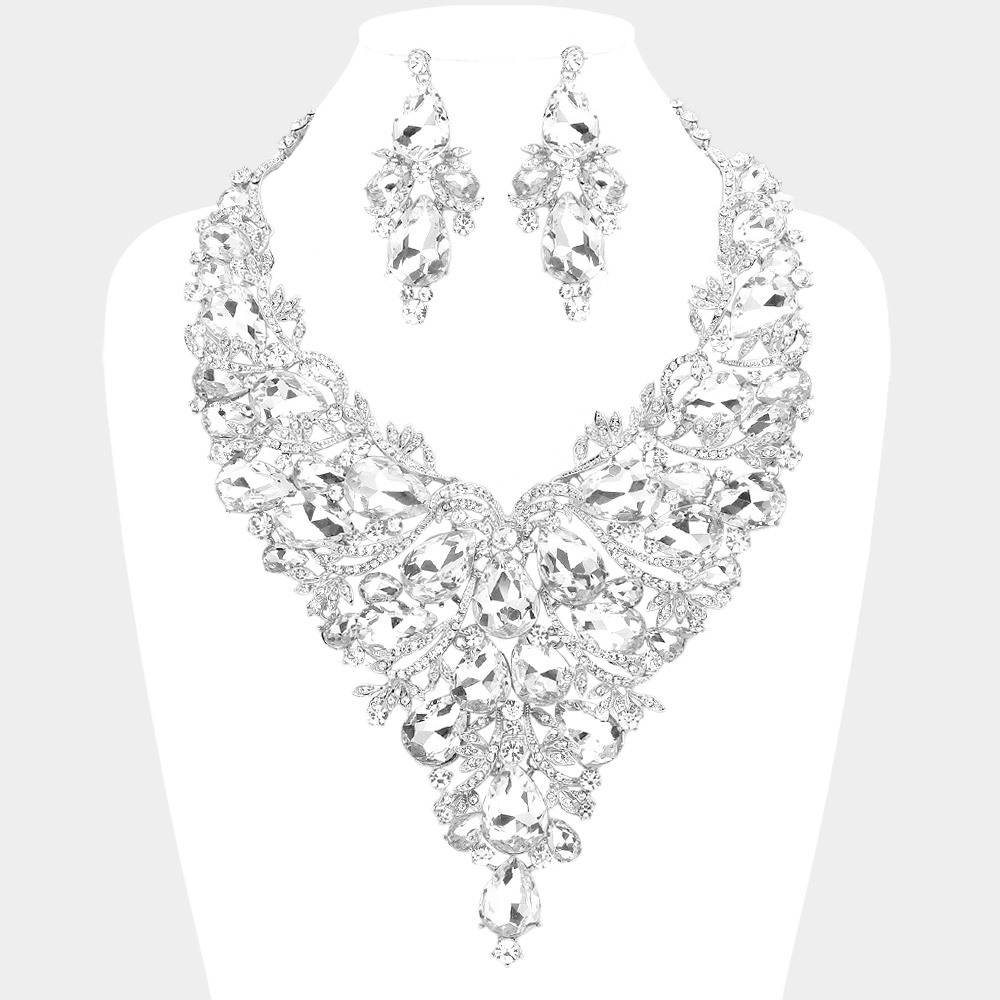 Teardrop Stone Cluster Embellished Evening Statement Necklace