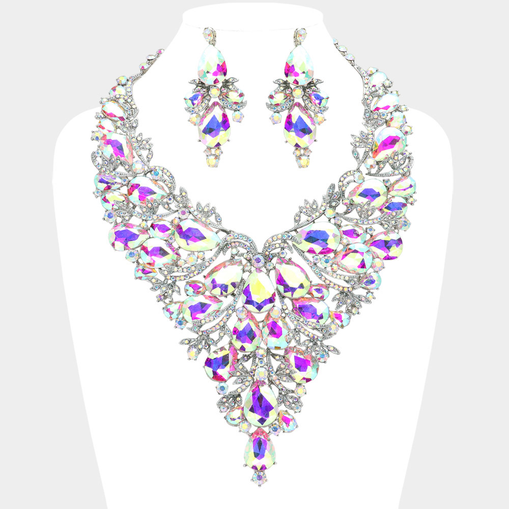 Teardrop Stone Cluster Embellished Evening Statement Necklace
