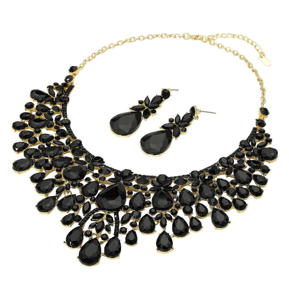 Teardrop Stone Cluster Embellished Statement Evening Necklace