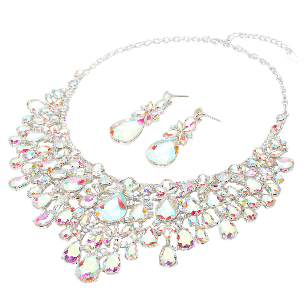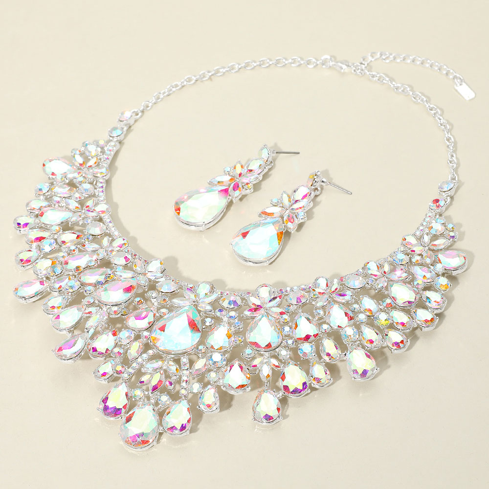 Teardrop Stone Cluster Embellished Statement Evening Necklace