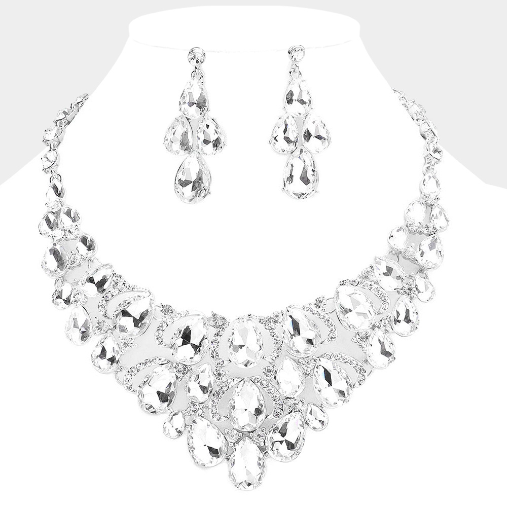 Teardrop Stone Accented Rhinestone Necklace