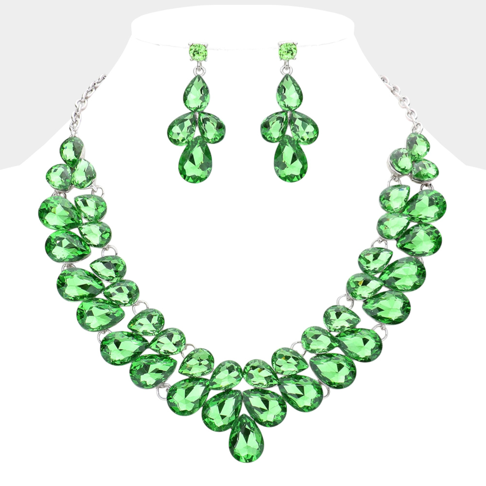 Teardrop Stone Cluster Evening Necklace