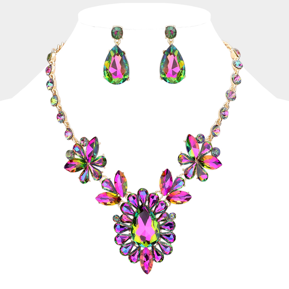 Teardrop Stone Cluster Evening Necklace