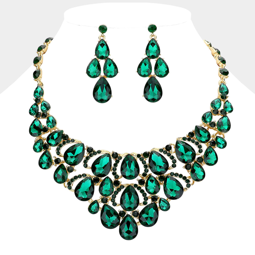 Crystal Teardrop Rhinestone Pave Evening Necklace