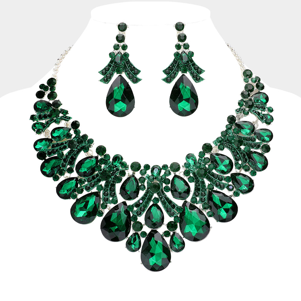 Teardrop Stone Cluster Chandelier Dangle Evening Earrings