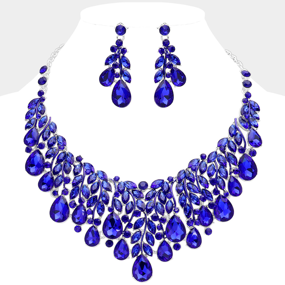 • Exquisite statement necklace and matching earrings featuring a stunning teardrop gem cluster design. Perfect for formal occasions, weddings, or evening events, this jewelry set adds instant glamour and sophistication to any outfit with its luxurious sparkle and refined detailing.