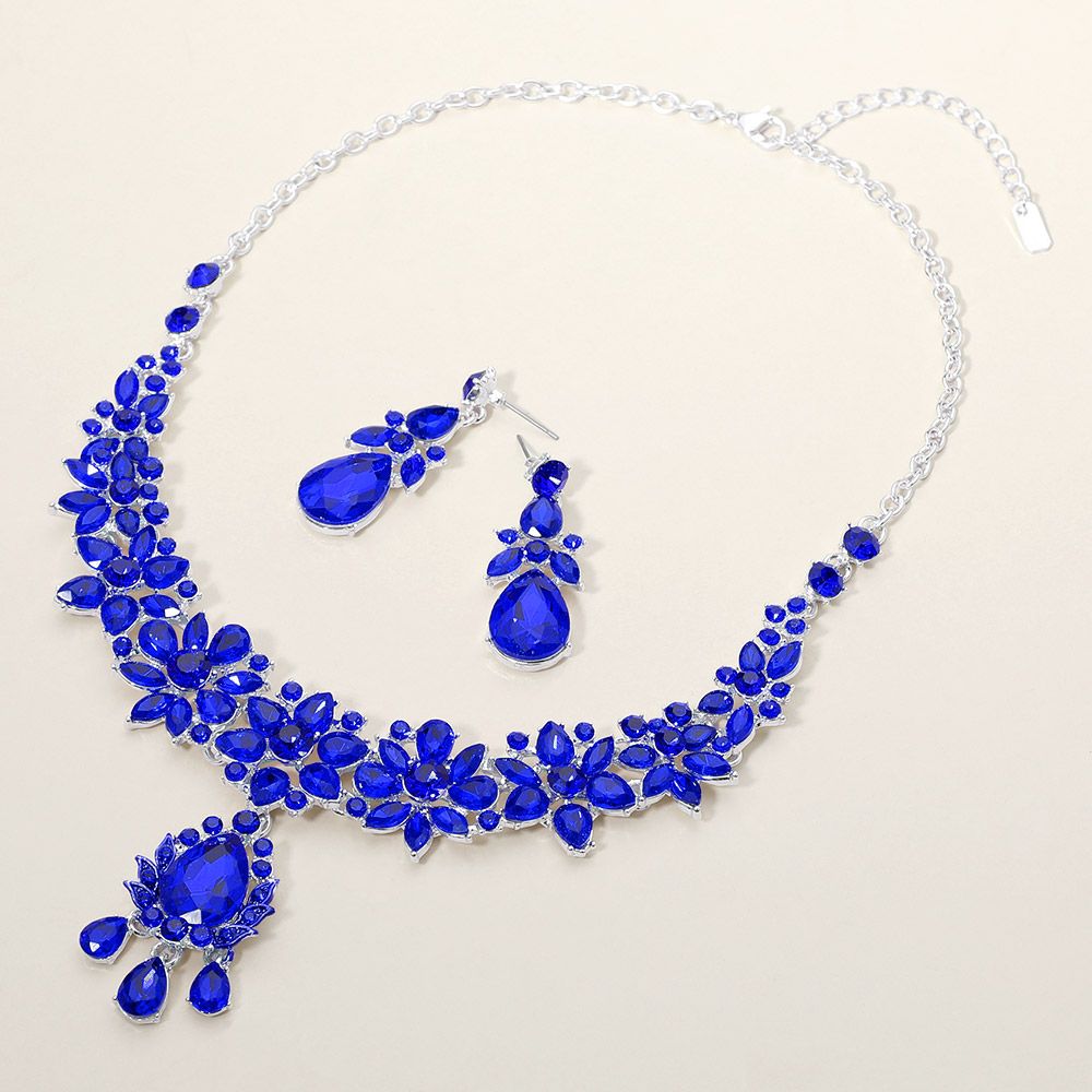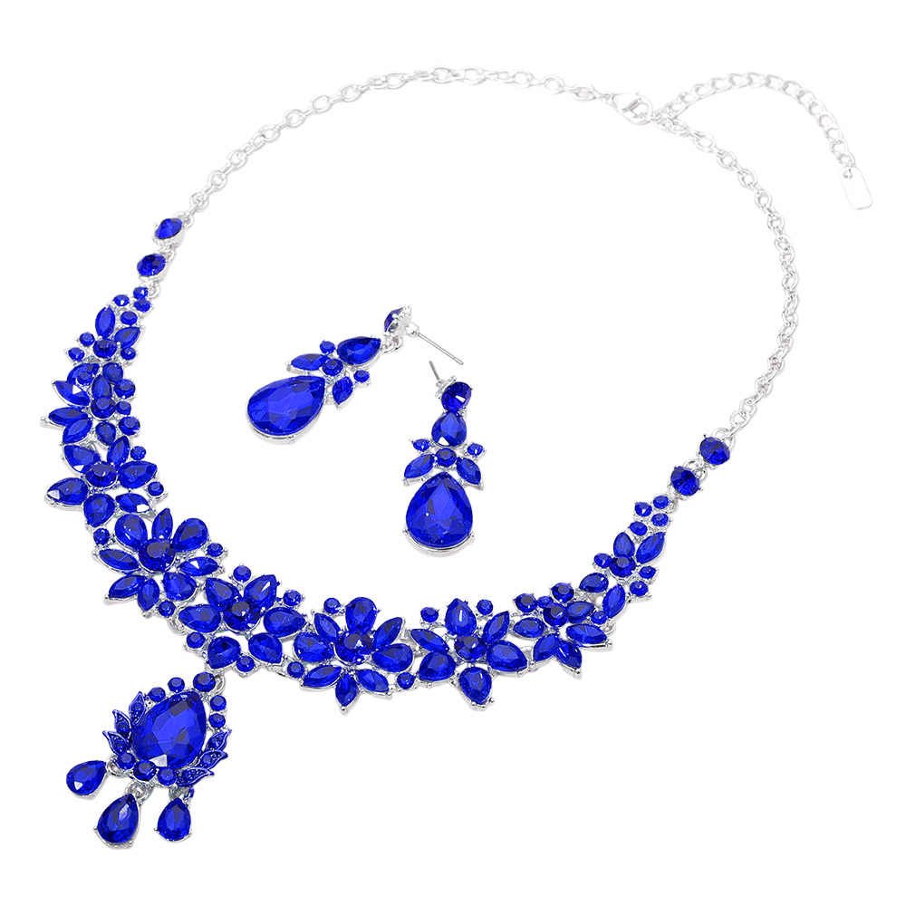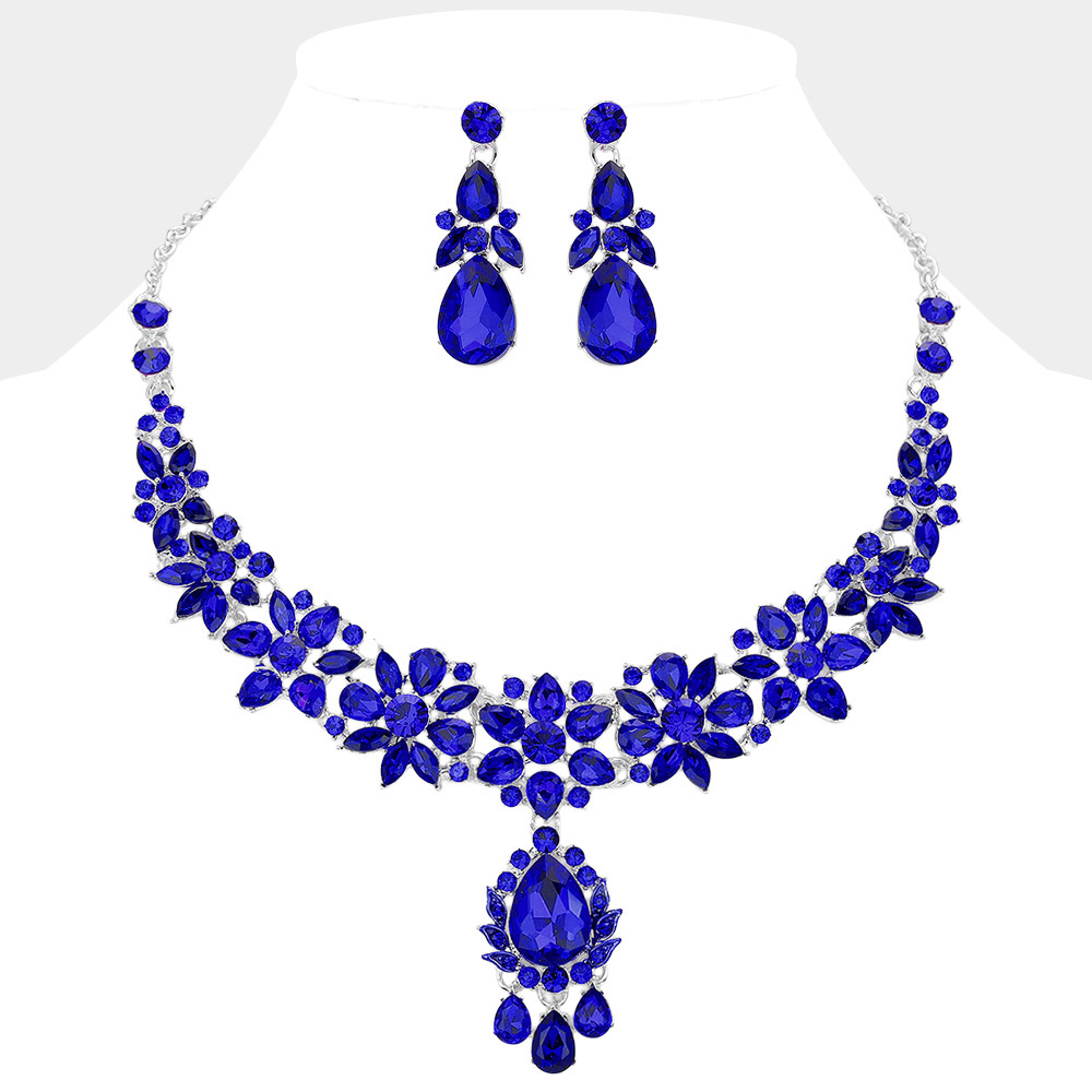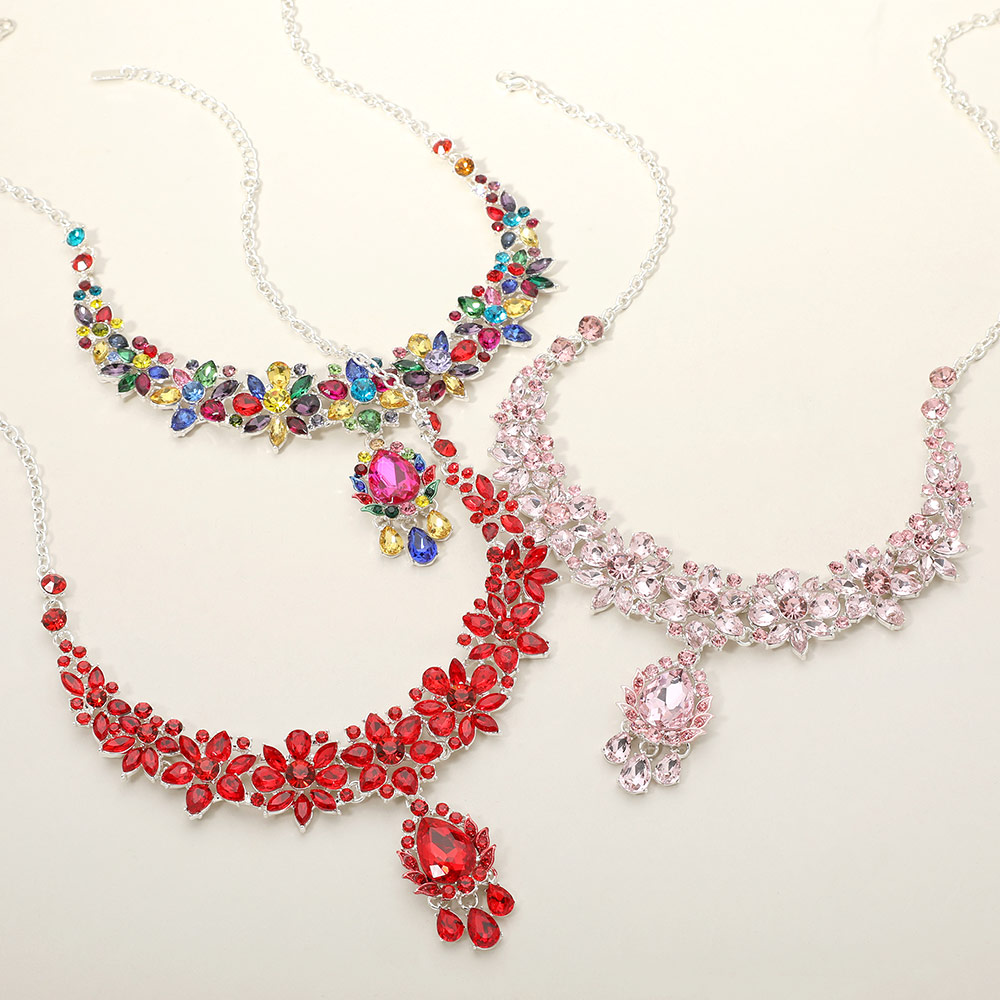 Teardrop Stone Cluster Pendant Flower Stone Embellished Evening Necklace