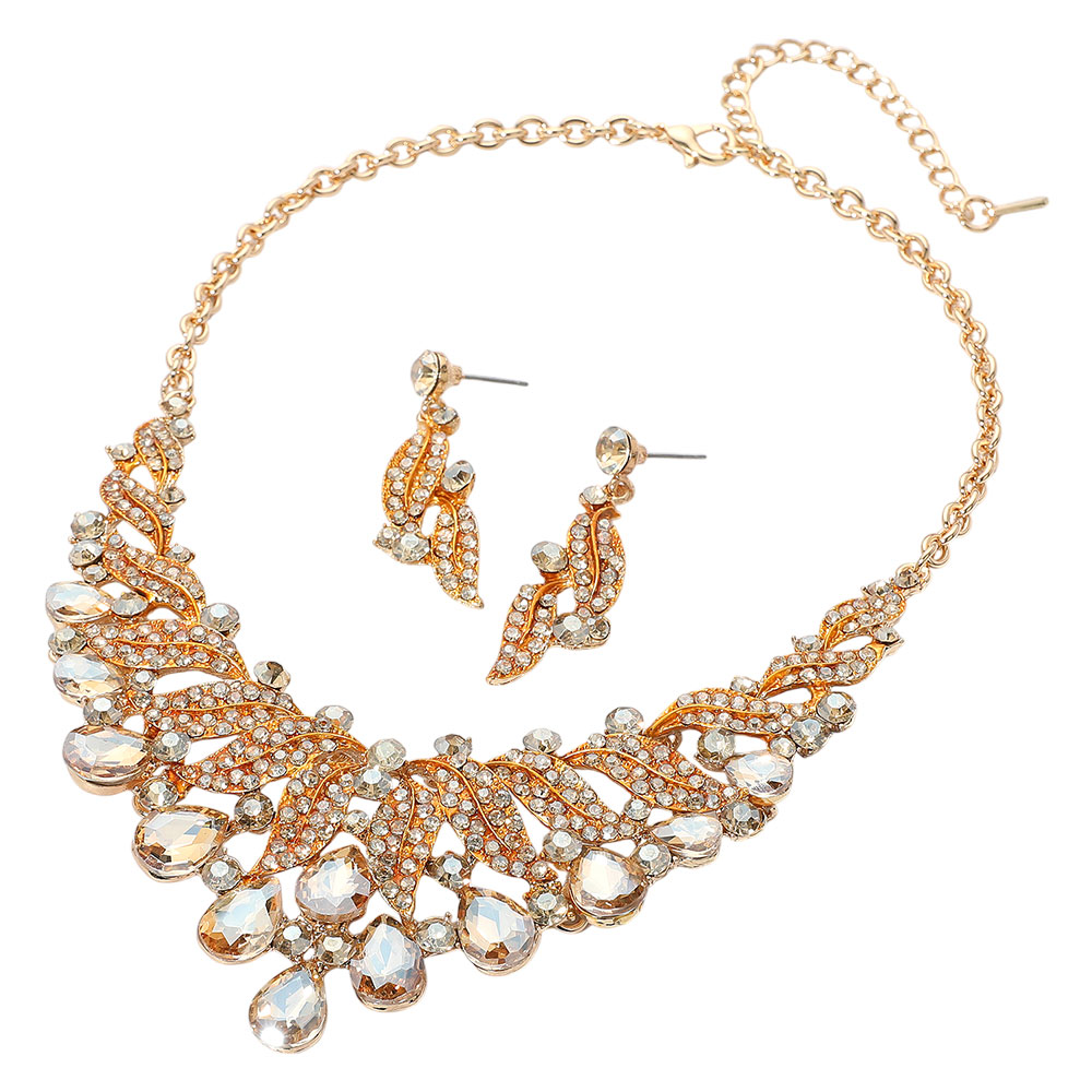 Crystal Rhinestone Trim Teardrop Collar Evening Necklace