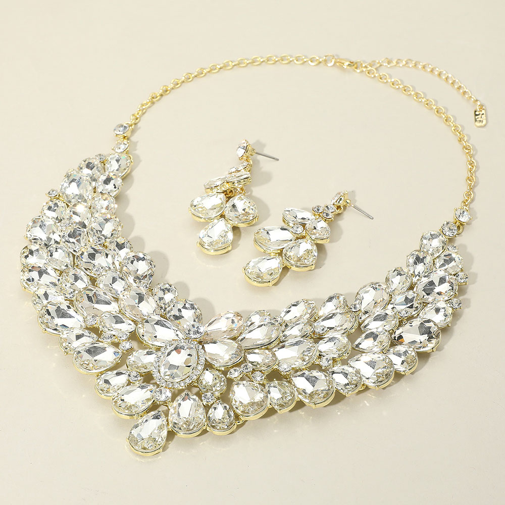 • Elegant jewelry set featuring a layered crystal necklace and matching teardrop earrings. Designed for maximum sparkle and sophistication, perfect for weddings, parties, or formal occasions. Adds radiant shine and refined beauty to any outfit for a truly captivating look.