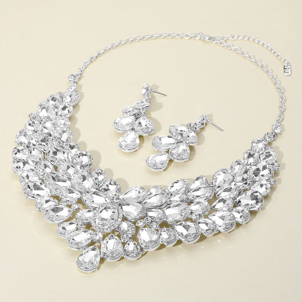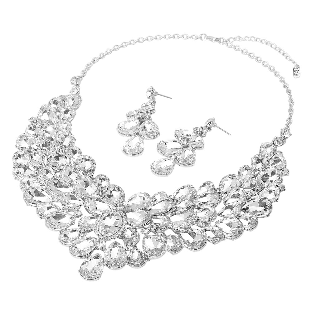 Teardrop Stone Cluster Statement Evening Necklace