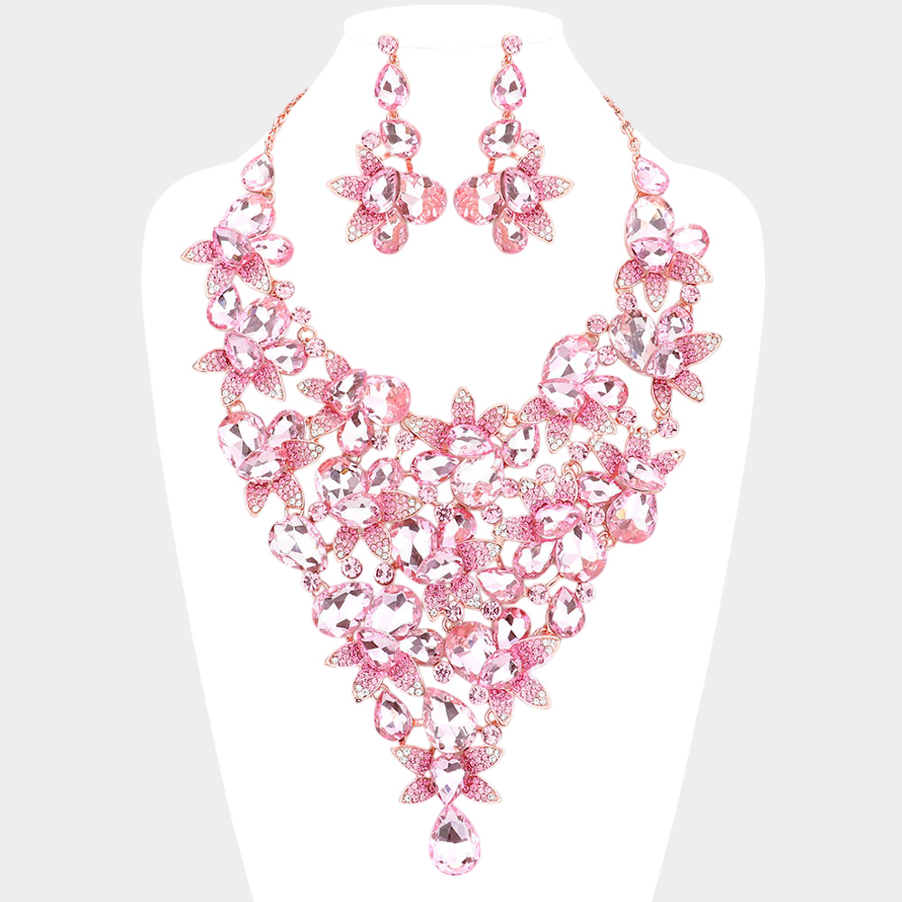 Teardrop Stone Leaf Cluster Vine Statement Evening Necklace