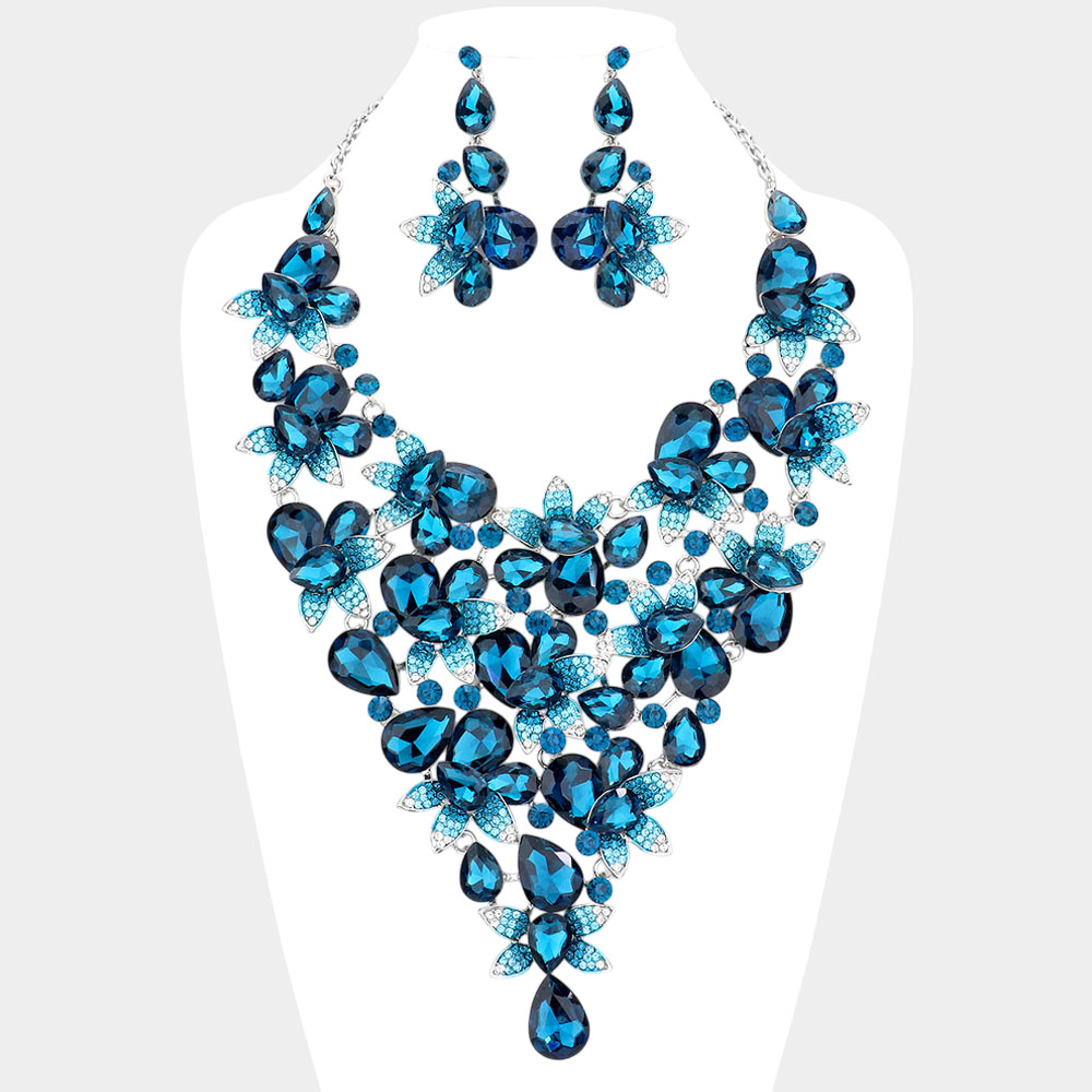 Teardrop Stone Leaf Cluster Vine Statement Evening Necklace