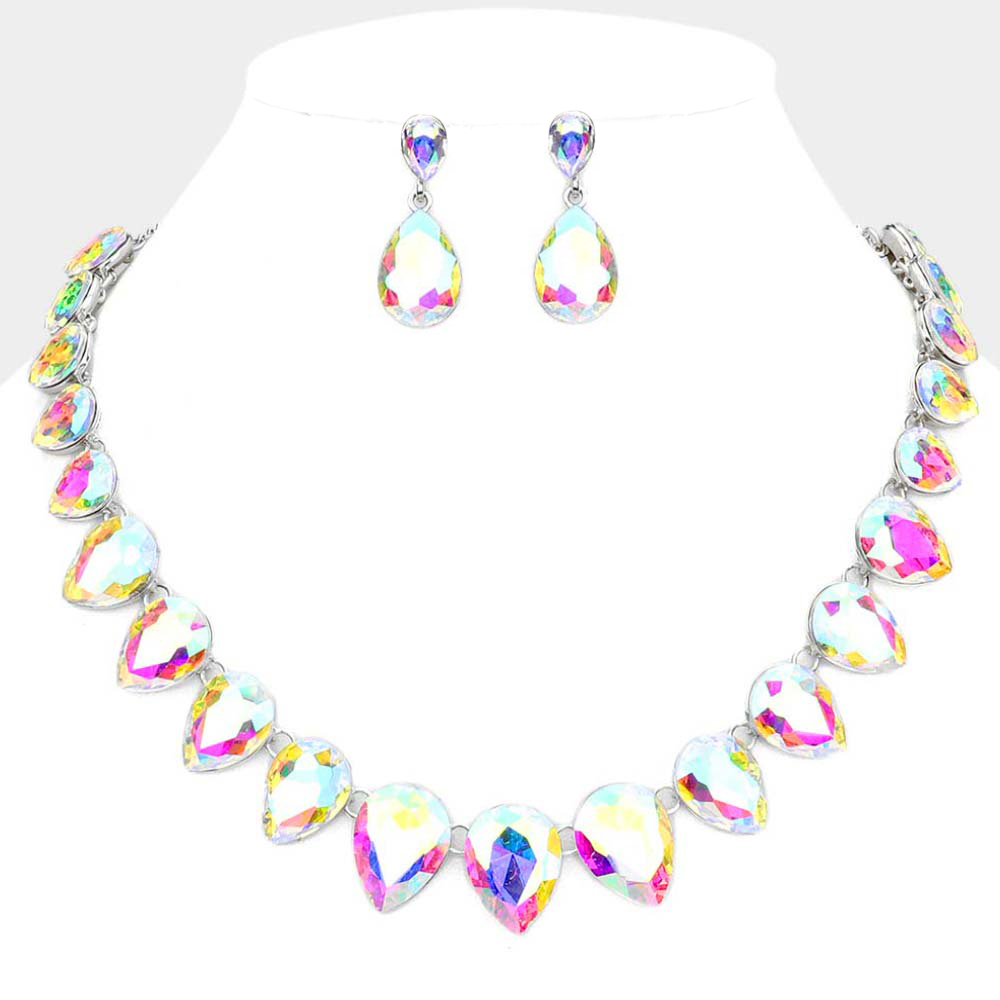 Teardrop Stone Link Evening Necklace