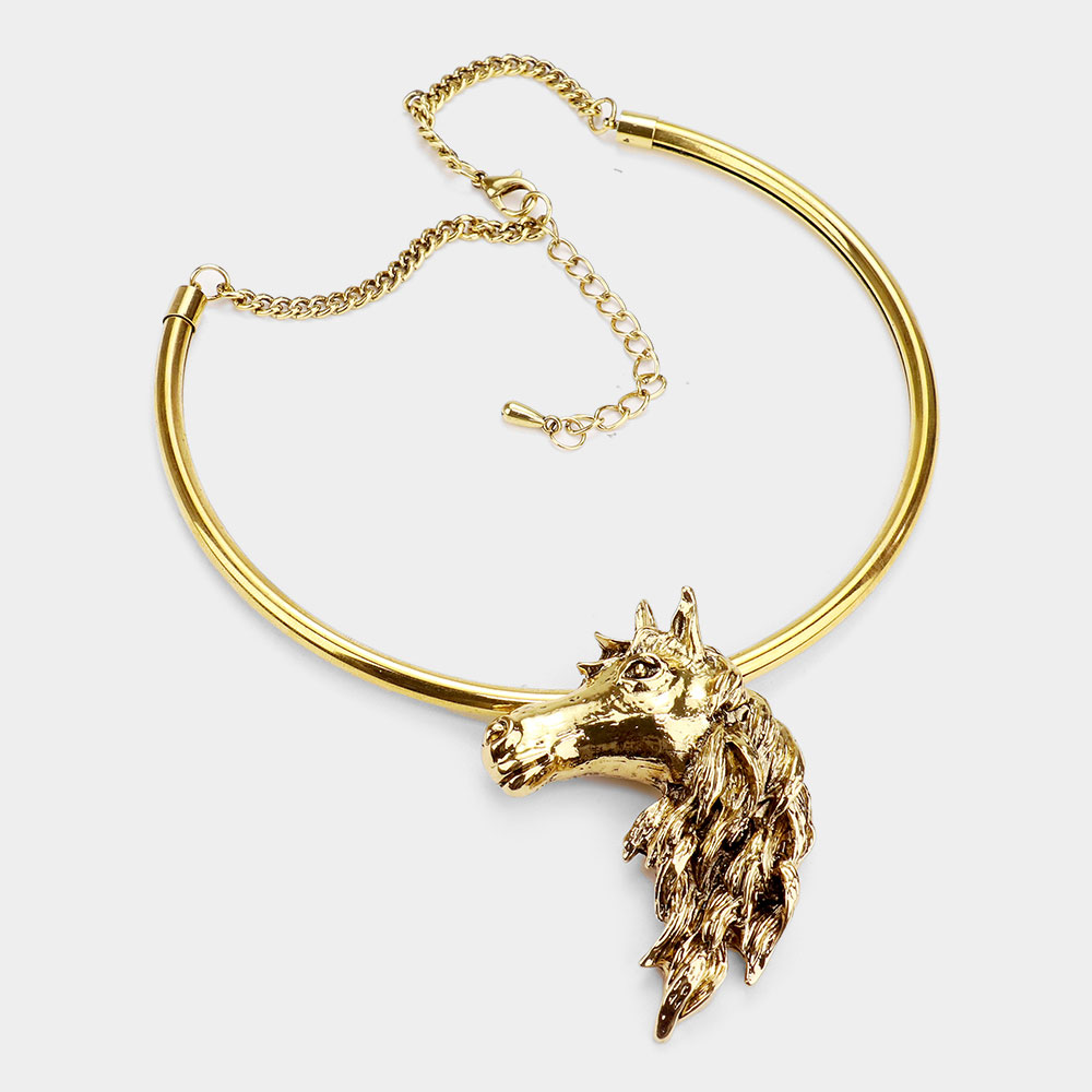 Antique Metal Horse Face Choker Necklace