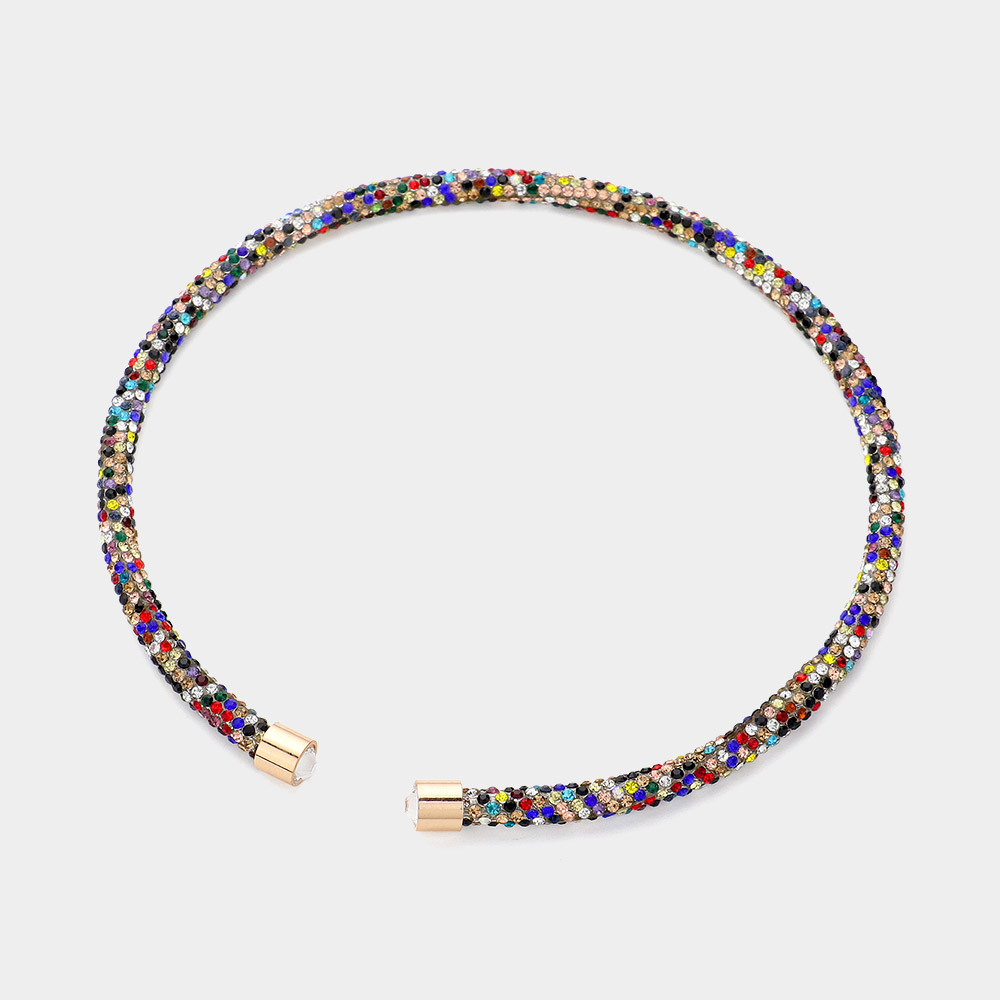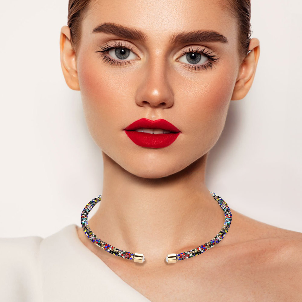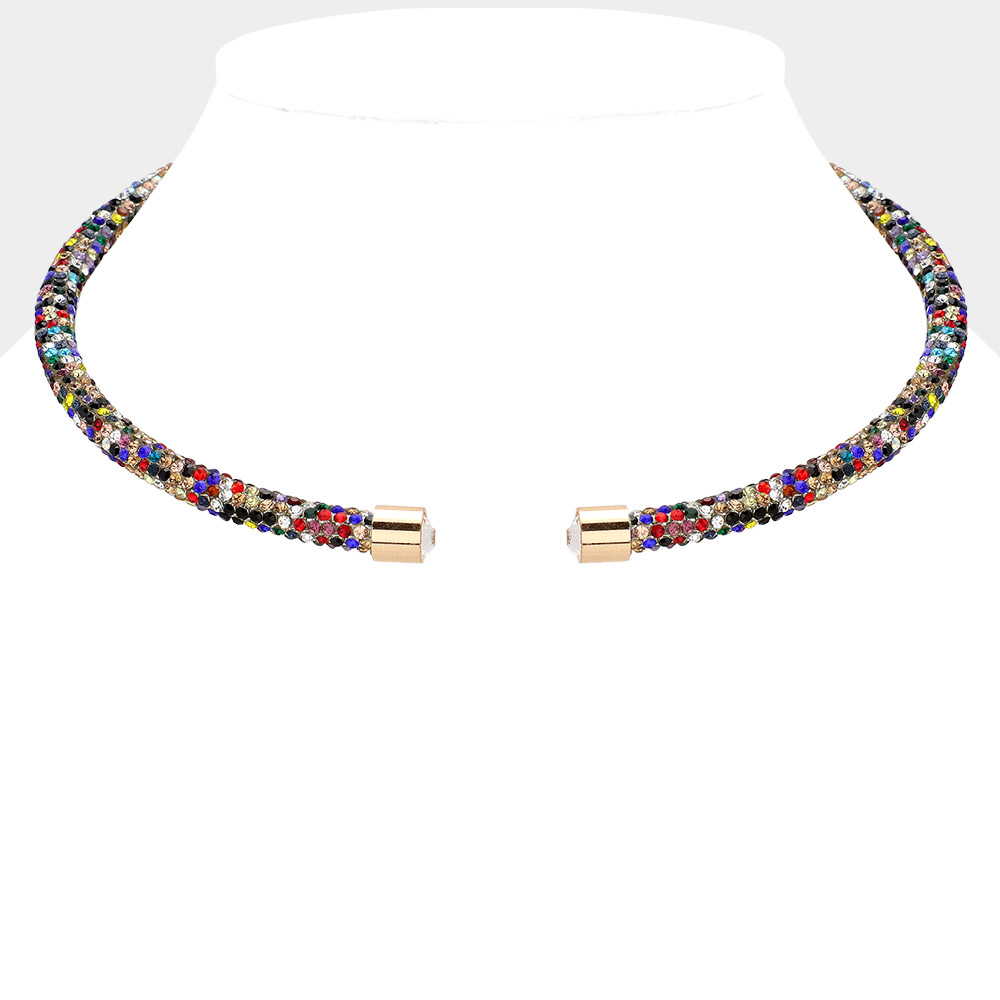 Bling Studded Rhinestone Tip Open Choker Necklace