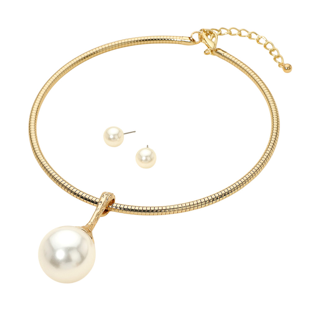 Bold Pearl Pendant Accent Statement Choker Necklace