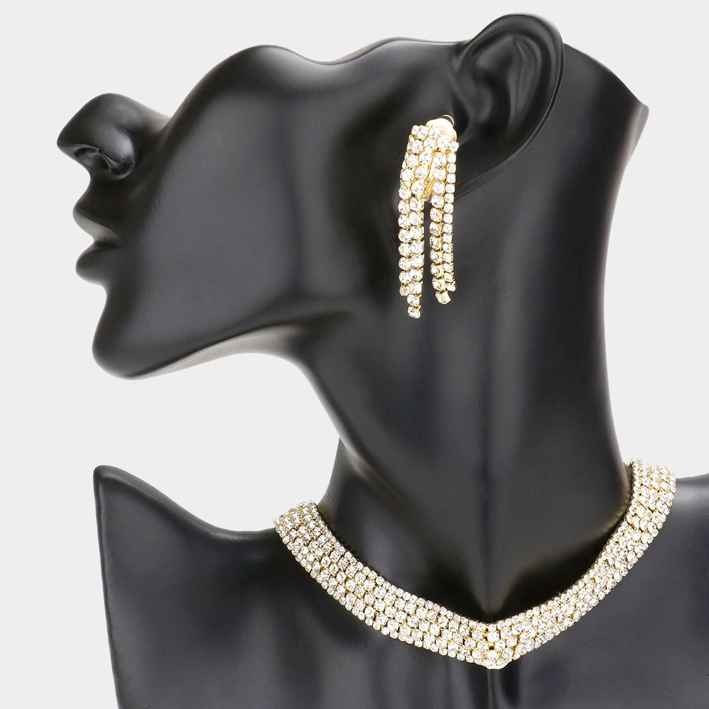 Bubble Crystal Choker Necklace & Clip Earring Set
