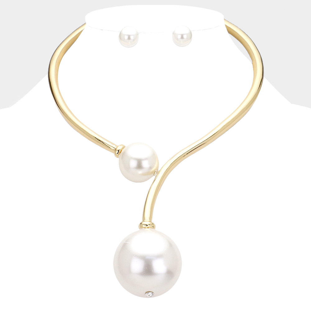 Gold Dipped Brass Metal 12mm Pearl Necklace
