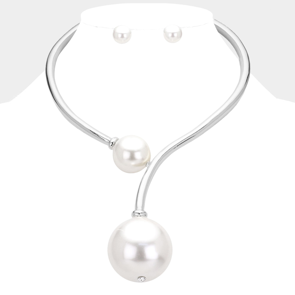 Gold Dipped CZ Stone Pearl Embellished Geometric Earrings