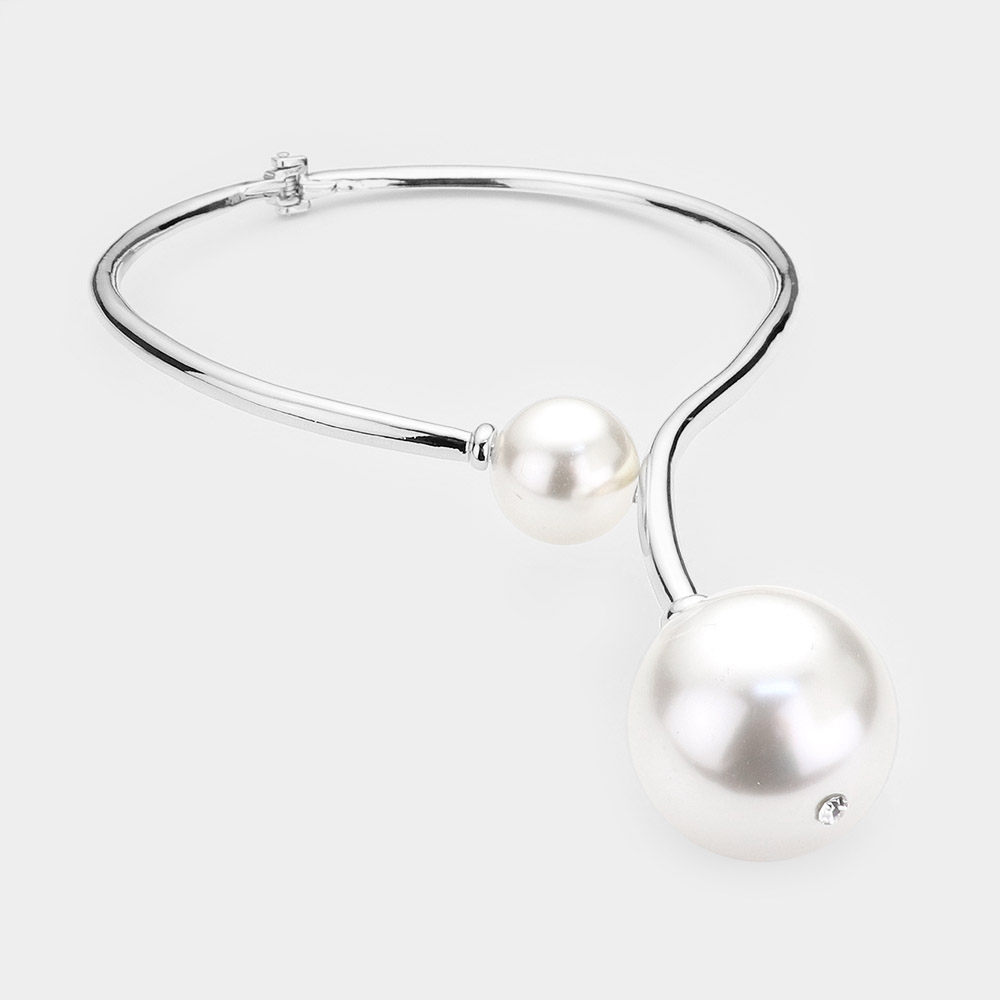 Natural Stone Accented Embossed Metal Elephant Hinged Bracelet