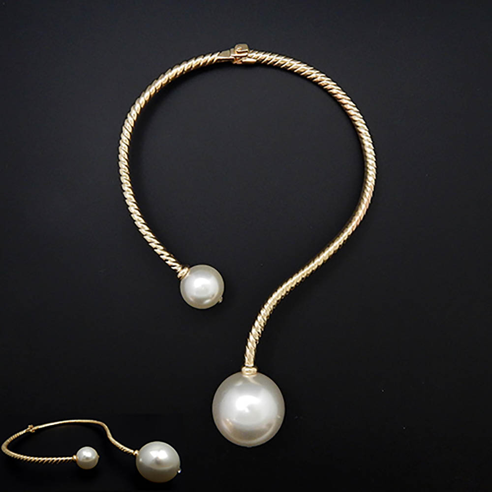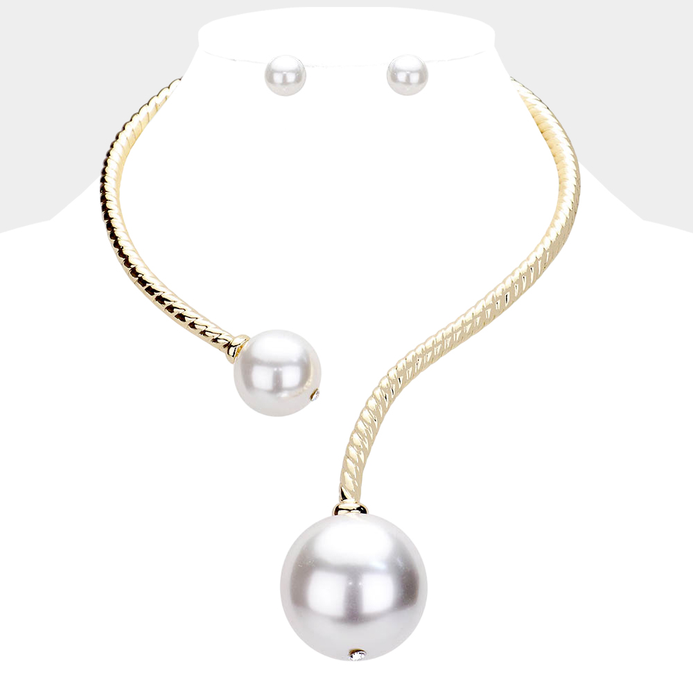 Chunky Pearl Textured Metal Collar Choker Necklace