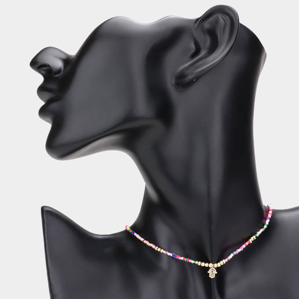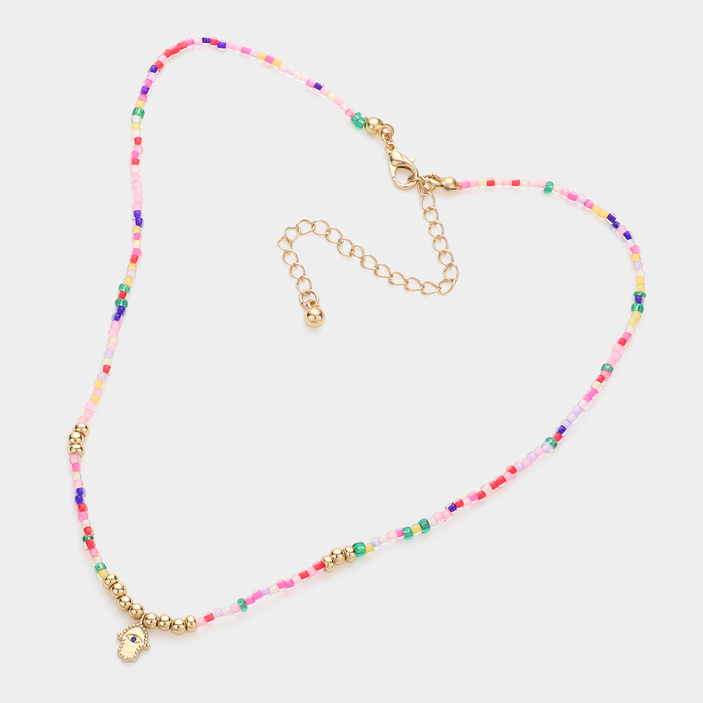 Evil Eye Hamsa Hand Seed Beaded Mini Pouch Bag