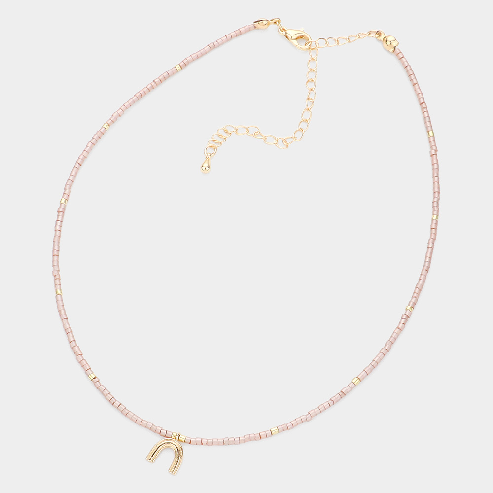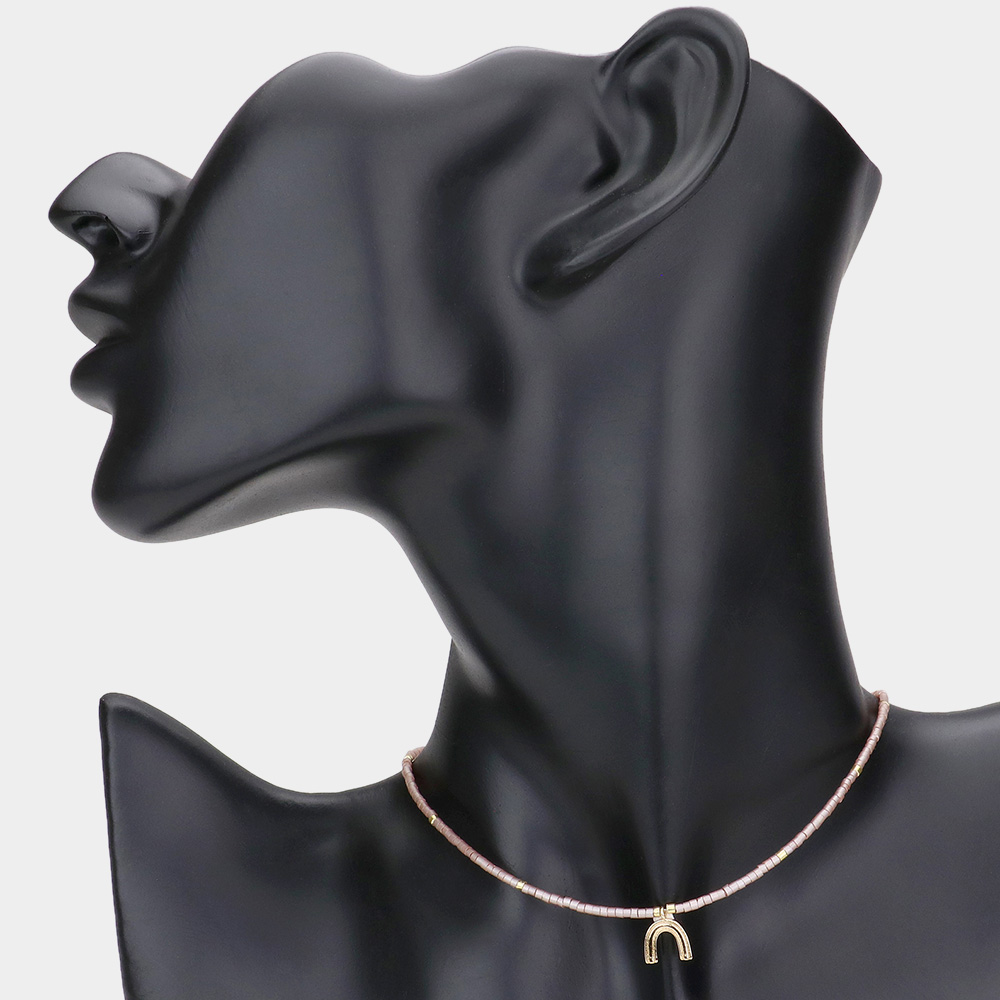 Metal Arch Pendant Tiny Beaded Choker Necklace