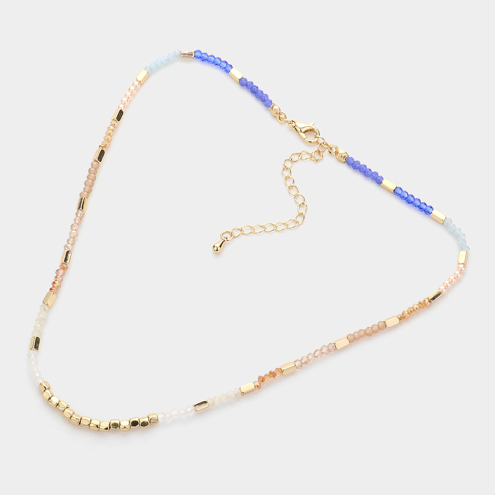 Metal Beads Pointed Faceted Beaded Choker Necklace