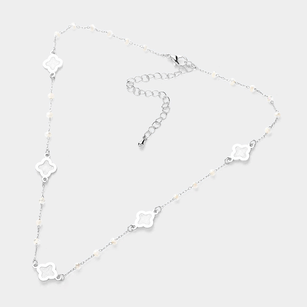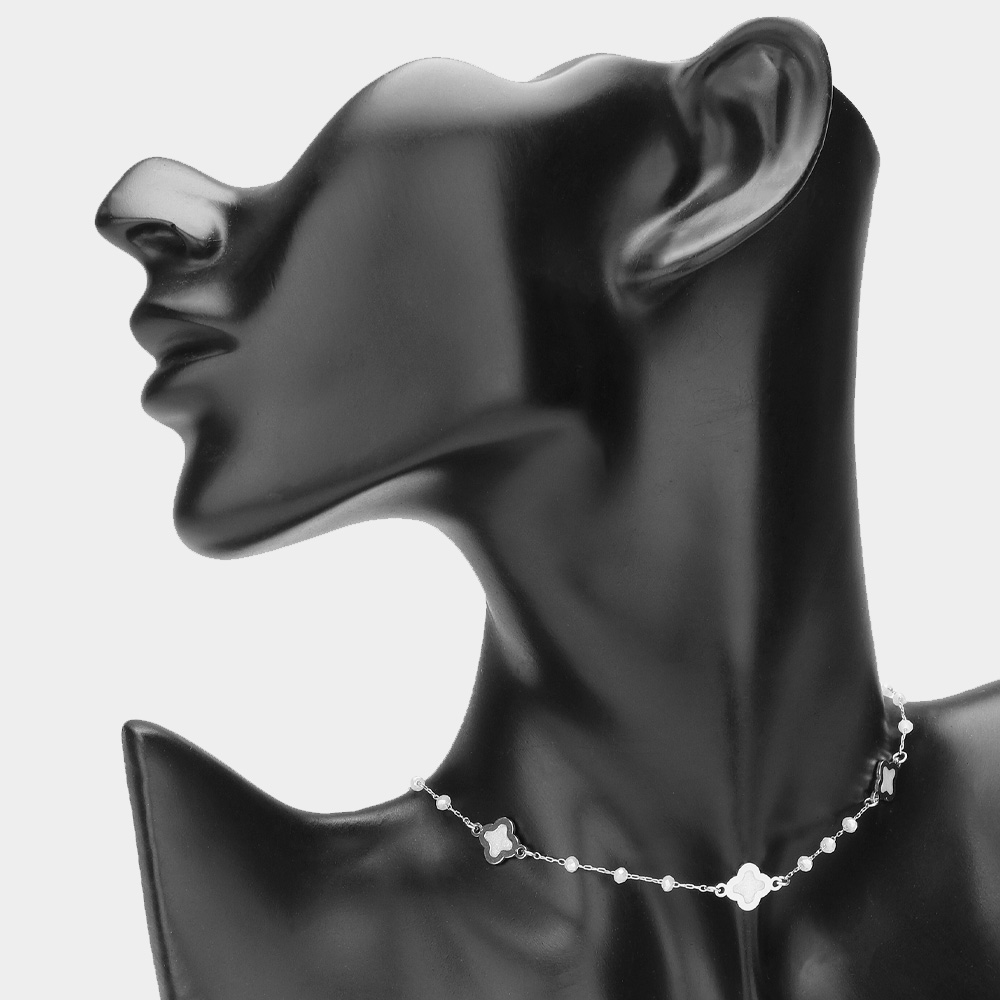 Mother Of Pearl Quatrefoil Station Choker Necklace