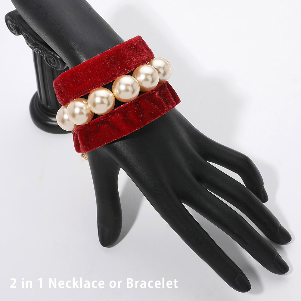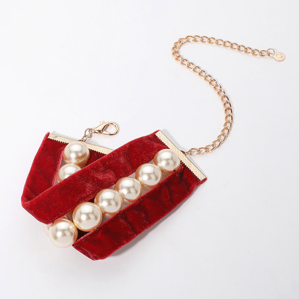 Pearl Beaded Velvet Choker Necklace