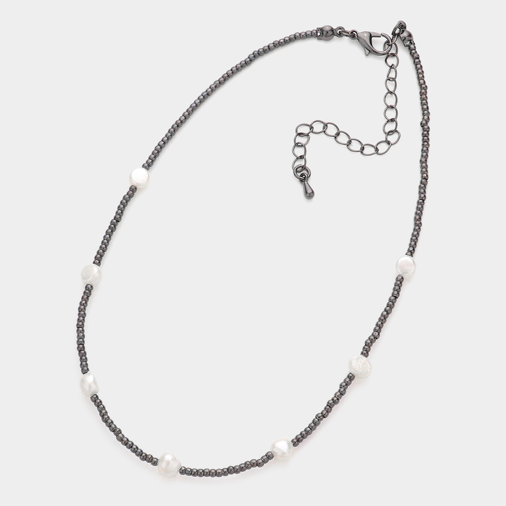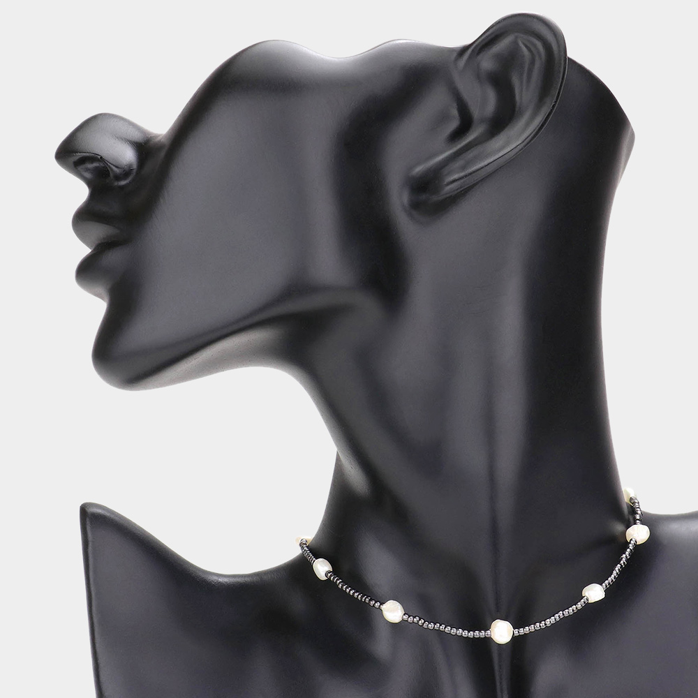 Pearl Station Beaded Choker Necklace