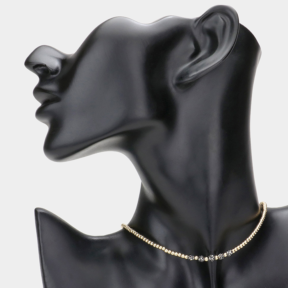 Quintuple Shamballa Ball Accented Beaded Choker Necklace