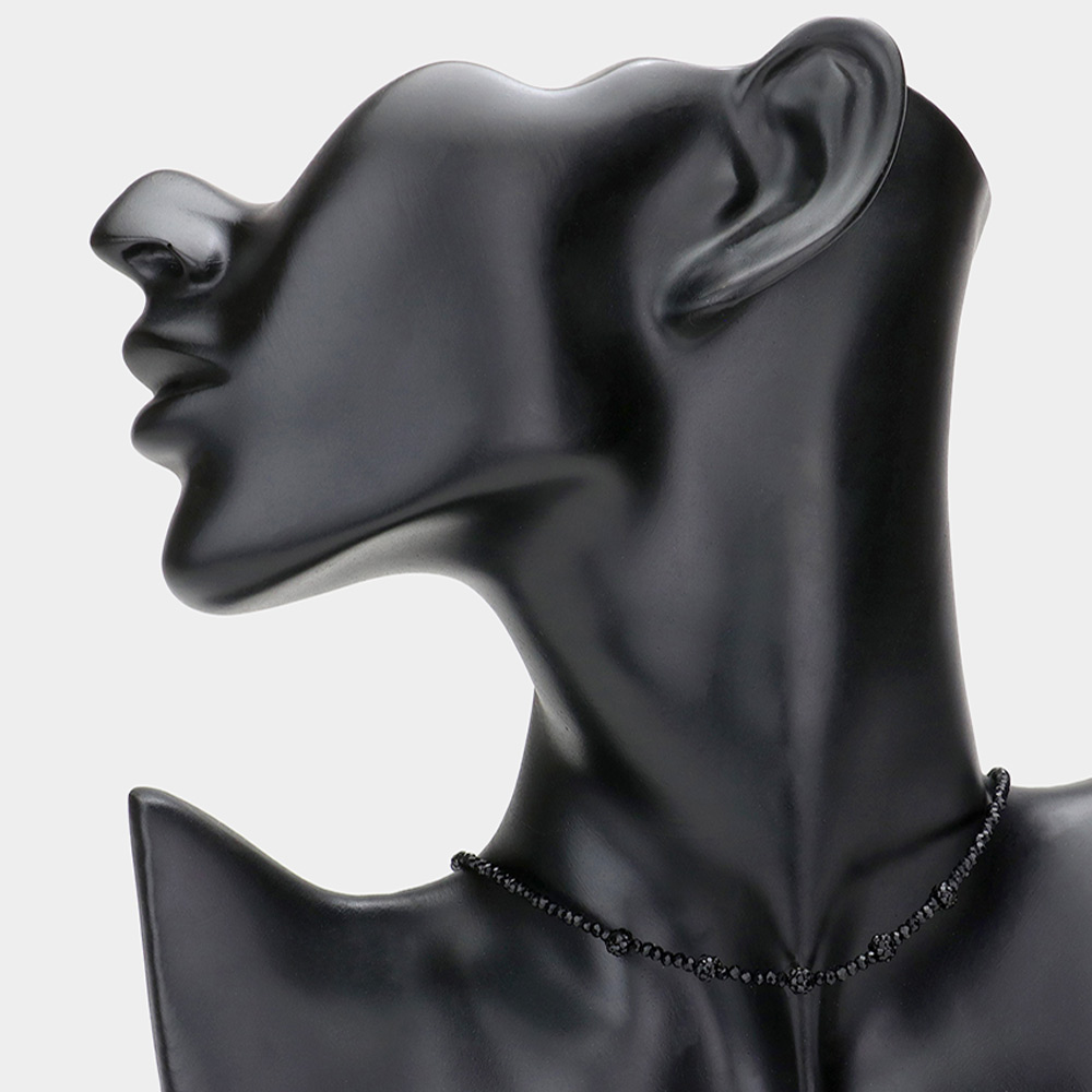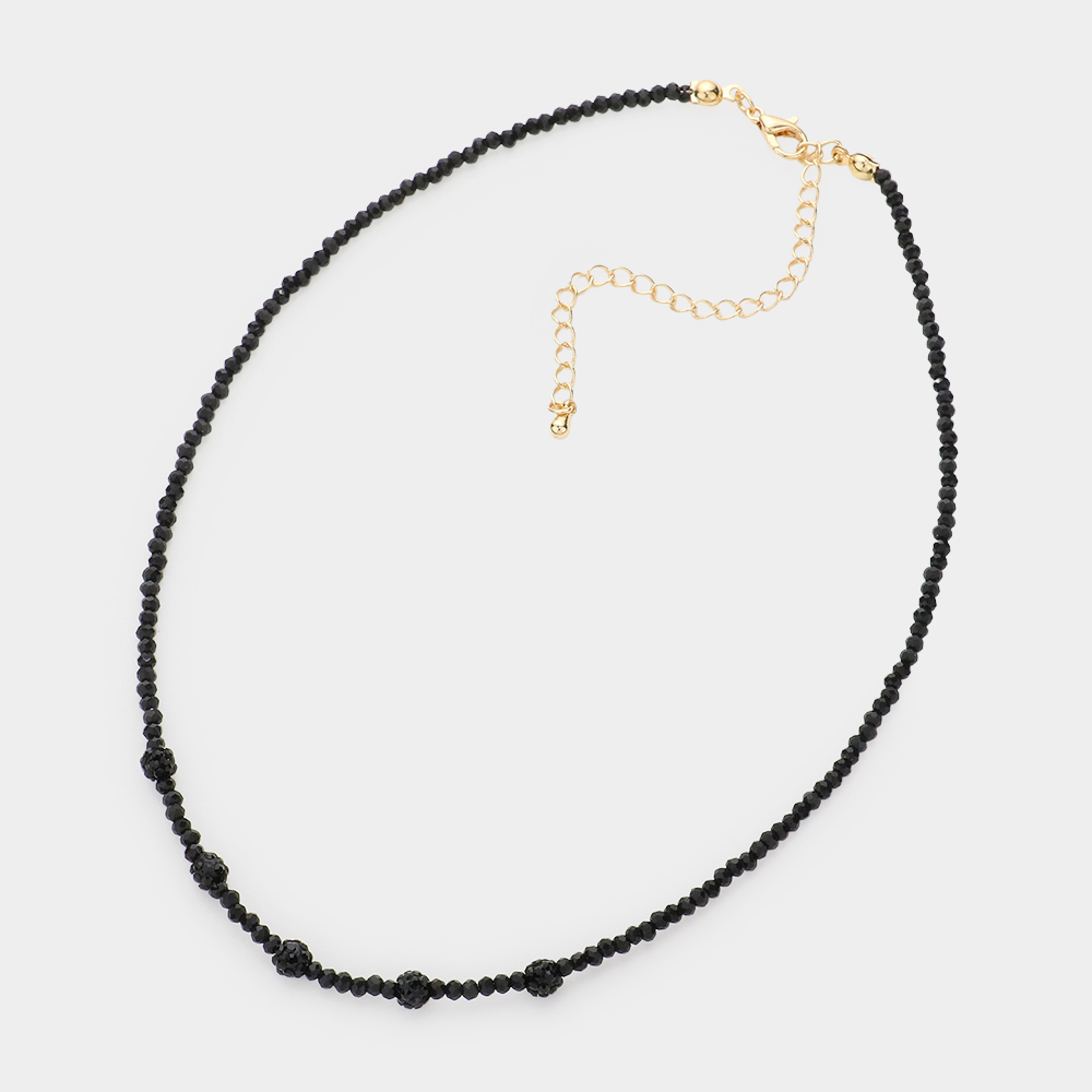 Quintuple Shamballa Ball Accented Faceted Beaded Choker Necklace