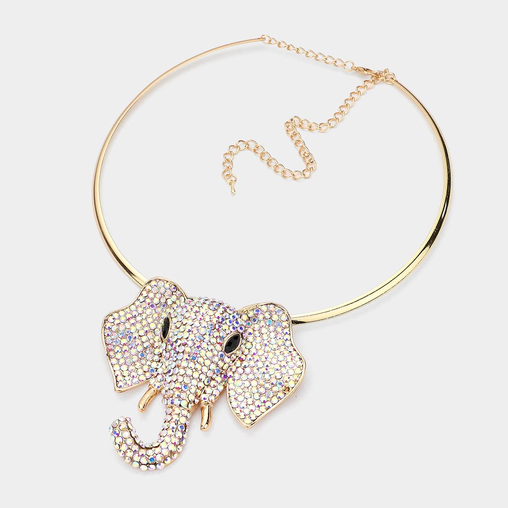 Rhinestone Pave Elephant Choker Necklace