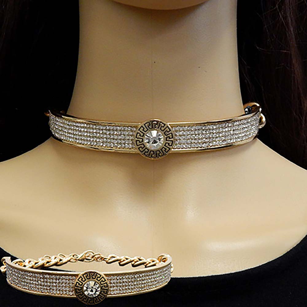 Round Stone Centered Rhinestone Embellished Choker Necklace