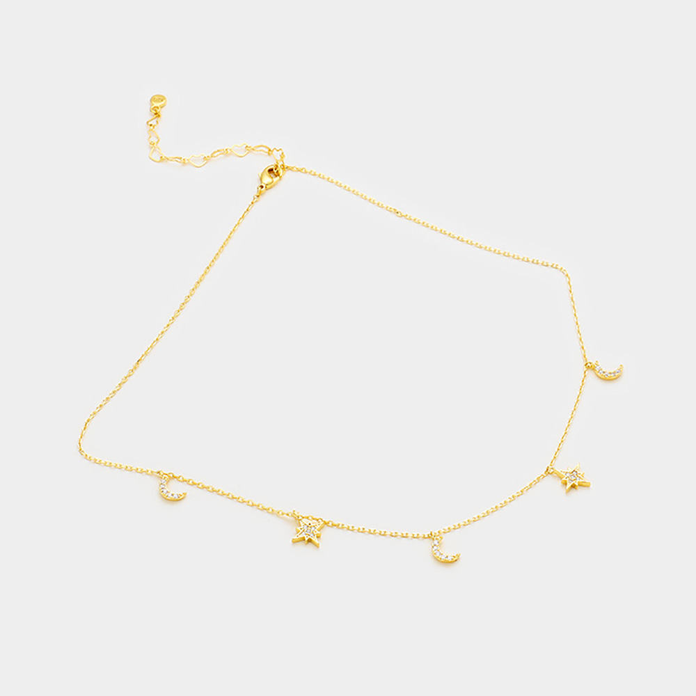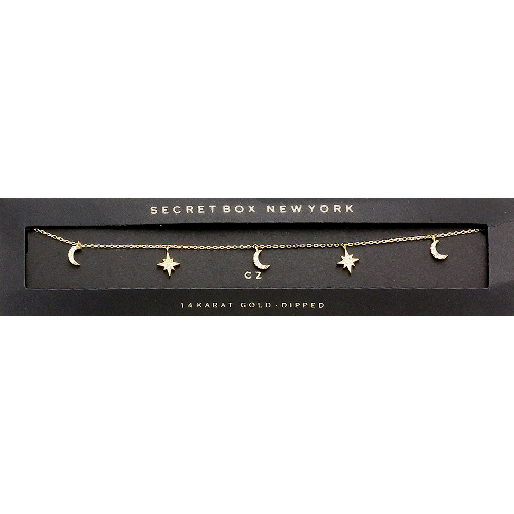 Secret Box _ 14K Gold Dipped CZ Moon Star Necklace