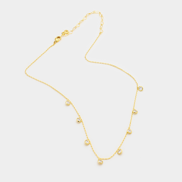 SECRET BOX_Sterling Silver Dipped Round CZ Detail Necklace