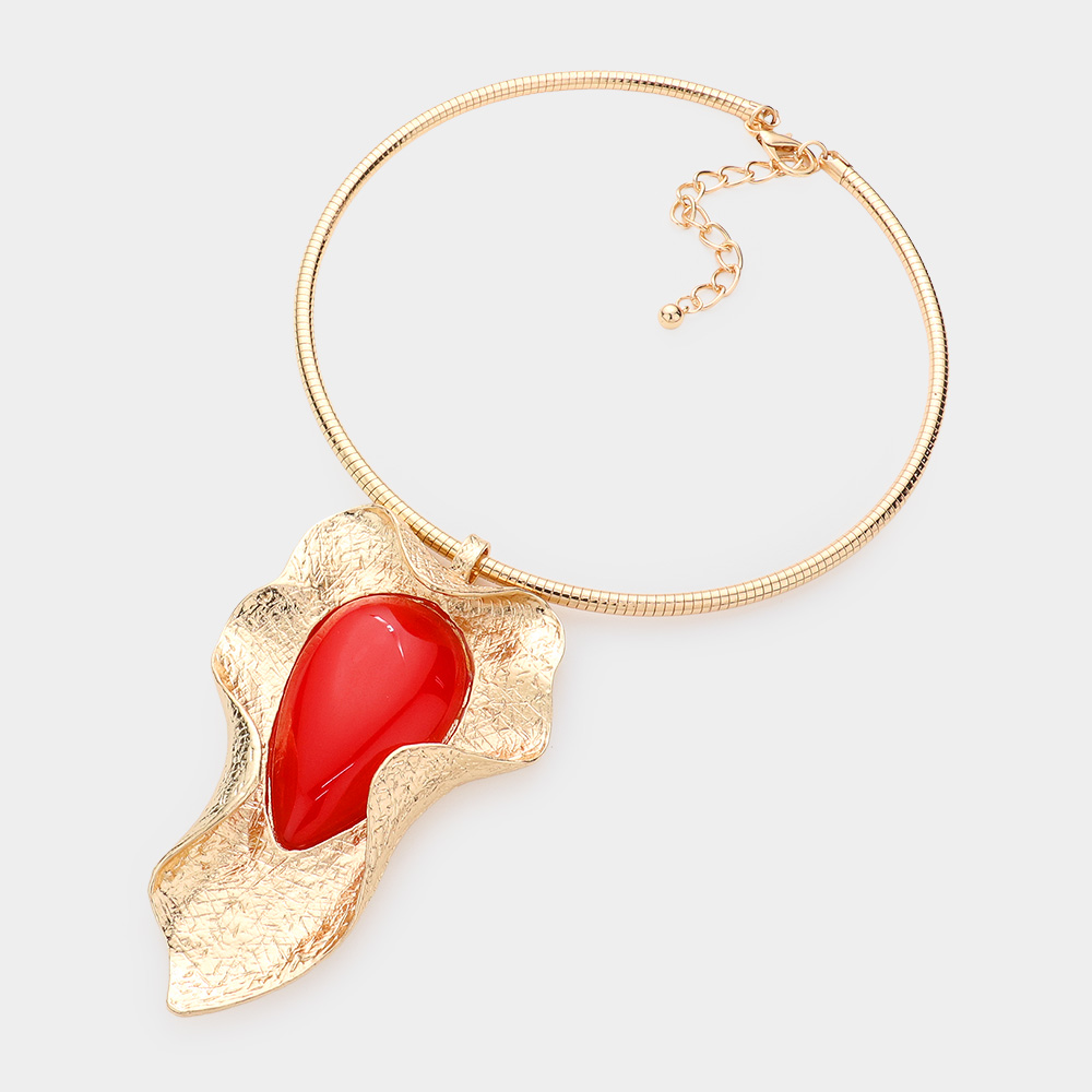 Teardrop Accented Abstract Metal Pendant Choker Necklace