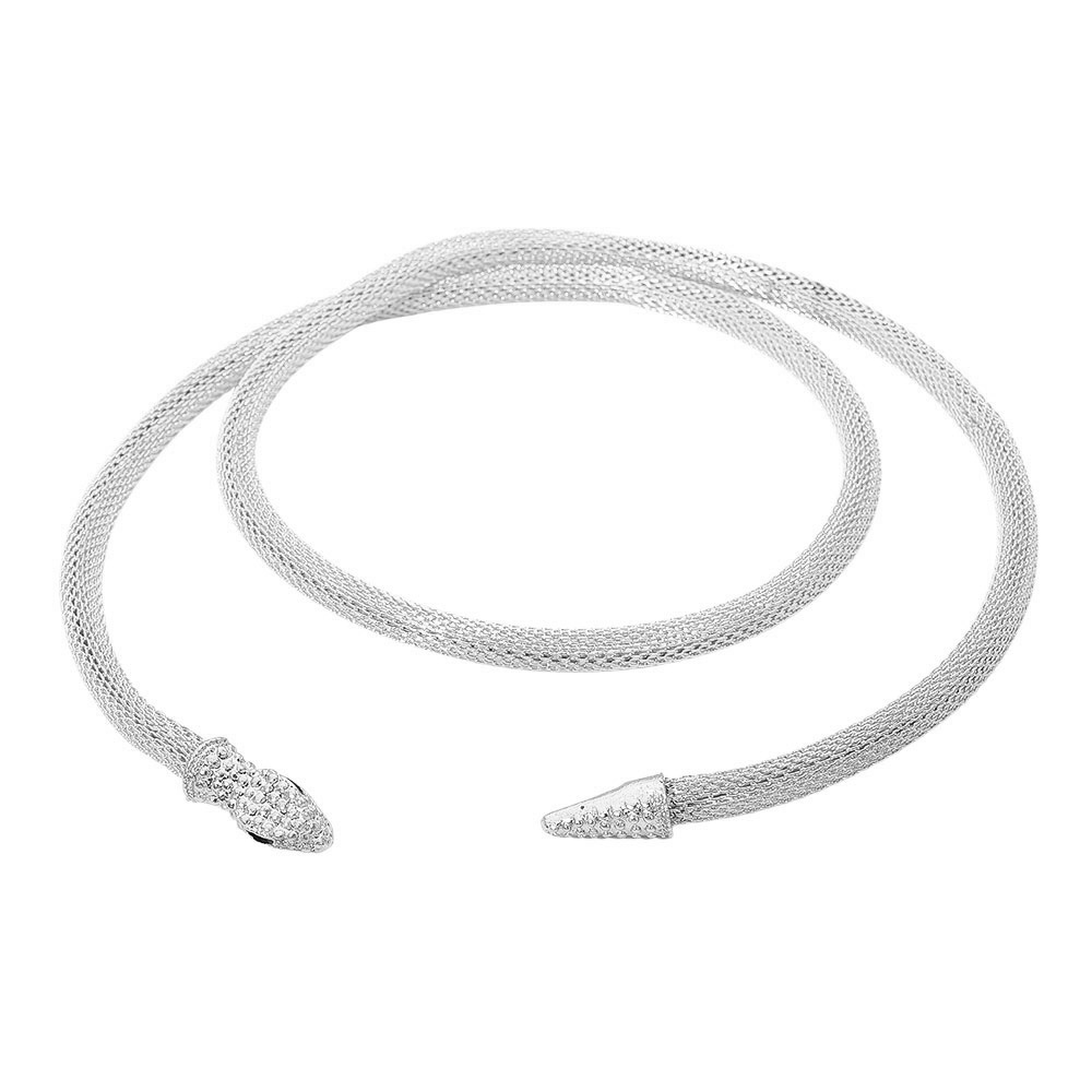 • Make a bold fashion statement with the Elegant Snake Choker Necklace featuring a textured mesh design and sparkling tip accents. Its flexible wrap style and refined shine bring modern sophistication and timeless allure to any outfit, perfect for both evening and casual wear.